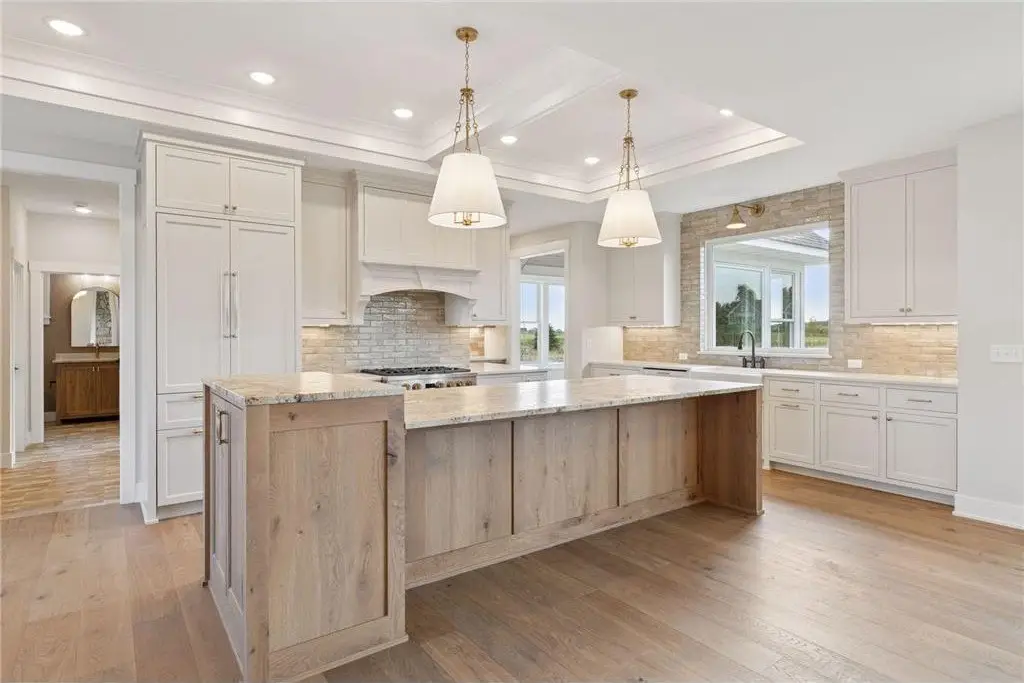 Welcome to this exceptional custom-built home by Derrick Custom Homes, a true masterpiece offering 4 bedrooms, 3 bathrooms, and an expansive layout designed for both everyday living and elegant entertaining. From the moment you step inside, you'll be captivated by the quality craftsmanship and thoughtful design. The open-concept main level features a warm and inviting living room, anchored by a gas fireplace surrounded by custom built-in cabinetry, creating a cozy yet sophisticated ambiance. The gourmet kitchen is a chef’s dream, showcasing full-height custom cabinetry, a spacious center island, decorative tile backsplash, walk-in pantry with a wet bar, and stainless-steel appliances. Stylish lighting and high-end fixtures are thoughtfully placed throughout the home, adding a modern and refined touch. Natural light pours in through expansive picture windows, enhancing every corner of the home. Enjoy year-round relaxation on the four-season porch, complete with its own fireplace, the perfect space for morning coffee or evening gatherings. Retreat to the luxurious primary suite, featuring a spa-inspired ensuite with a dual-sink vanity, walk-in tile shower, indulgent soaking tub, and in-floor heating. A second bedroom, full bath, powder room, mudroom, and laundry room round out the main floor. The finished lower level is designed for entertainment and versatility, offering a spacious media and gaming area with a third gas fireplace and wet bar and in-floor heat throughout the finished spaces. Two additional bedrooms, each with walk-in closets, a 3/4 bath, dedicated exercise room, and ample storage space complete the lower level. An attached 3-car garage adds convenience and functionality to this already impressive home. This is a must-see property that perfectly blends luxury, comfort, and modern design. Schedule your private showing today!