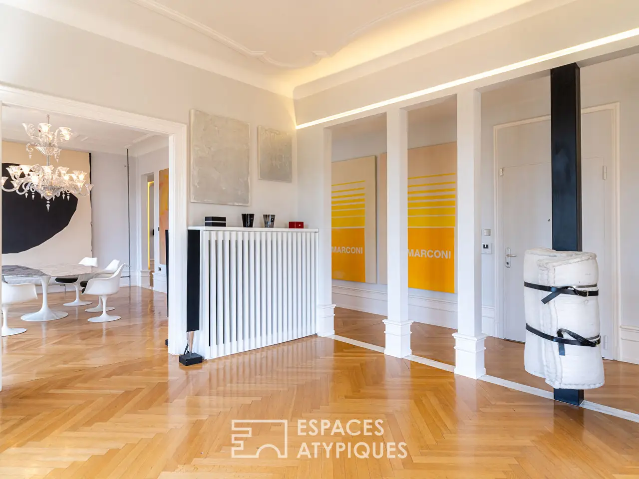 Nestled on the 4th floor of a luxury building, this opulent flat spans 320 m2. It has been extensively renovated by an architect to create an exceptional place to live, in which character features are elegantly combined with a contemporary lifestyle. The entrance opens onto a long corridor that already hints at the atmosphere of the place. Solid parquet flooring, high ceilings, noble materials, mouldings and wood panelling - the vocabulary is that of last century's bourgeois lifestyle, underlined by immaculate tones and particularly elegant lighting effects. The vast double living room is bathed in light thanks to its many windows and six balconies offering uninterrupted views of the Cathedral and the verdant Parc du Contades. The dining room is an extension of this, inviting you to share moments of conviviality. The Bulthaup dining kitchen boasts clean lines and top-of-the-range finishes in perfect harmony with the spirit of the place.The layout of the sleeping area has been carefully thought out to ensure privacy for everyone. The master bedroom includes a magnificent suite with en suite shower room and dressing room adorned with Lalique handles. The other wing offers four spacious bedrooms sharing a white marble bathroom. A functional laundry room and a second dressing room complete this layout designed for absolute comfort.A cellar and two large enclosed garages complete the features of this unique property, which will delight lovers of old-world charm looking for top-of-the-range features and an exceptional location.Gas condensing boiler installed in 2006Air conditioning installed in 2017PVC double-glazed windowsMajor co-ownership works carried out in 2006 (facade renovation/ roof/ zinc work/ gas boiler)REF. 1502Additional information* 10 rooms* 5 bedrooms* 1 bathroom* 1 bathroom* Floor : 4* 5 floors in the building* Parking : 2 parking spaces* 19 co-ownership lots* Annual co-ownership fees : 4 000 €* Property tax : 2 800 €* Proceeding : NonEnergy Performance CertificatePrimary energy consumptiond : 192 kWh/m2.yearHigh performance housing*A*B*C*192kWh/m2.year32*kg CO2/m2.yearD*E*F*GExtremely poor housing performance* Of which greenhouse gas emissionsd : 32 kg CO2/m2.yearLow CO2 emissions*A*B*C*32kg CO2/m2.yearD*E*F*GVery high CO2 emissionsEstimated average annual energy costs for standard use, indexed to specific years 2021, 2022, 2023 : between 3474 € and 4700 € Subscription IncludedAgency feesThe fees include VAT and are payable by the vendorMediatorMediation Franchise-Consommateurswww.mediation-franchise.com29 Boulevard de Courcelles 75008 ParisInformation on the risks to which this property is exposed is available on the Geohazards website : www.georisques.gouv.fr
