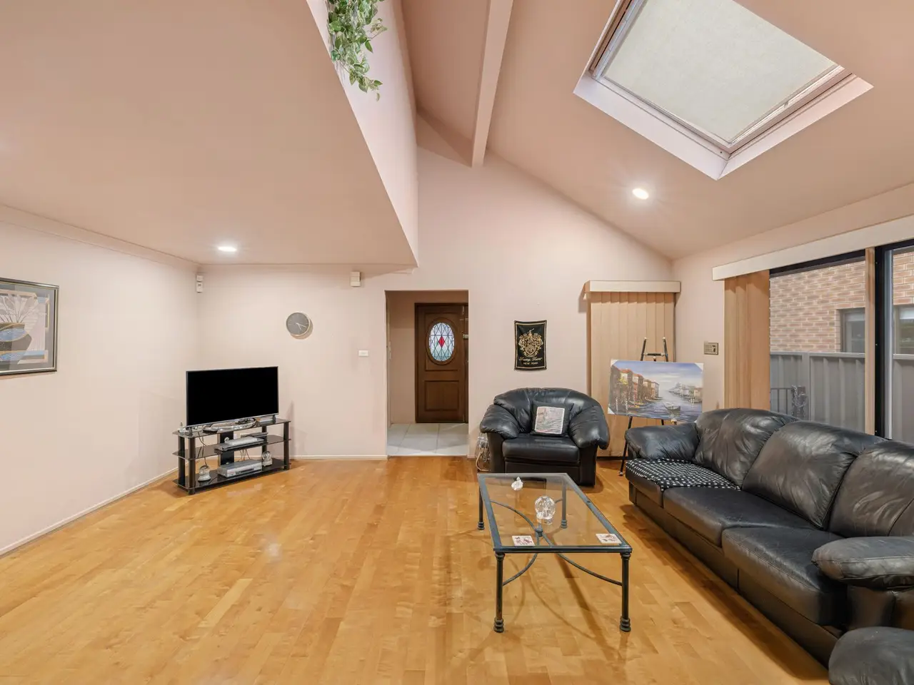 Set on a quiet, tree-lined street adjoining Strathfield Park, this north-to-rear-facing residence celebrates its leafy setting while offering space, privacy and a relaxed family lifestyle. Sunlight fills the interiors through skylights, highlight windows and vaulted ceilings, accentuating polished timber floors and a series of formal and casual living spaces. The backyard features an extensive all-season terrace with a barbecue, overlooking the gated pool and landscaped gardens. This classic home is well-maintained yet offers future scope to add your personal touch in a high-growth location. - Well maintained classic family home within Strathfield's Golden Mile precinct - Elegant collection of formal and casual living spaces set across two versatile levels - Full-width all-season alfresco terrace with built-in barbecue overlooking the pool - Well-maintained kitchen features timber cabinetry, gas appliances and dishwasher - Four bedrooms with built-ins, master suite with private balcony and elevated views - Two full bathrooms both with soaking tubs, one includes a luxe step-up spa bath - Features enjoy high cathedral-style ceilings, extensive highlight windows, skylights - Polished timber floors, air-conditioning, original fittings across both sunlit levels - Potential to renovate, personalise, enhance or add value in a high-growth area - Double garage with internal access, gated block boarded with landscaped gardens - Set within footsteps from Strathfield Park and within reach of elite schools and stations