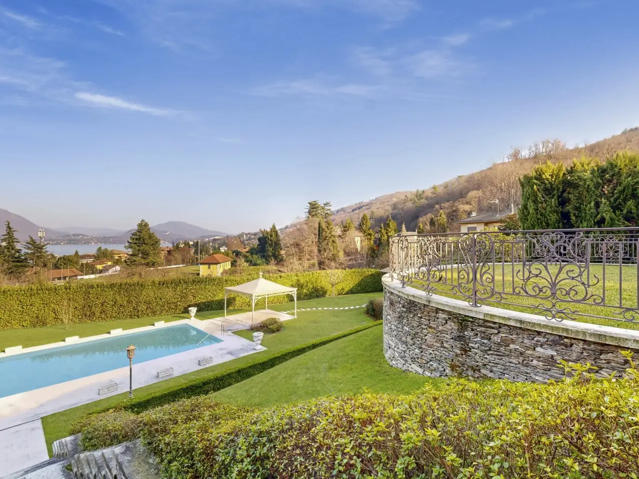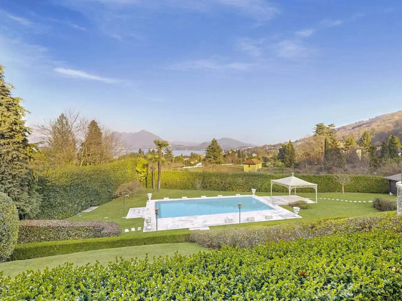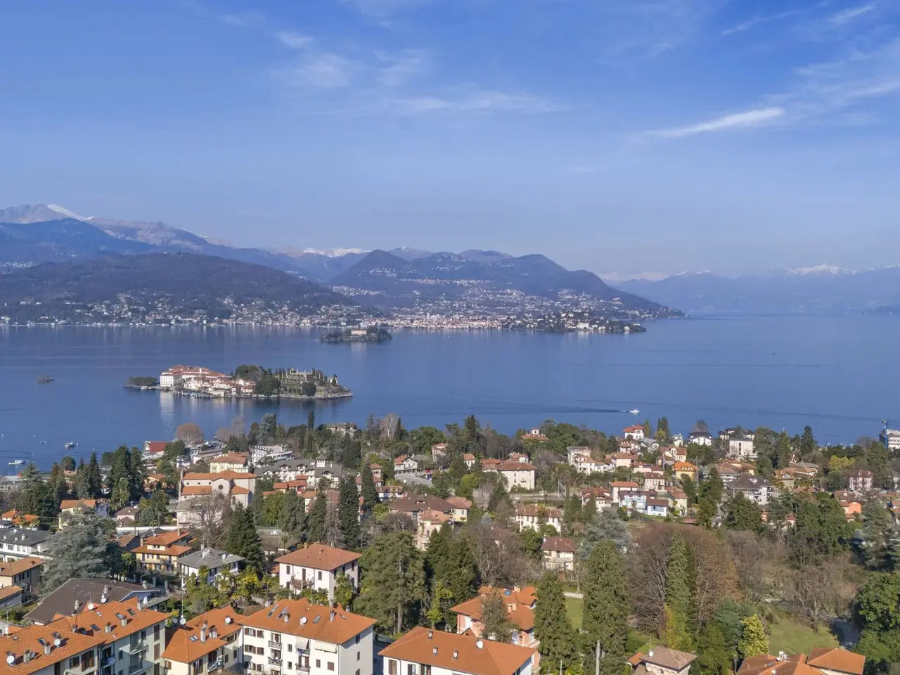 In a dominant and private position, just minutes from the center of Stresa, stands this exclusive luxury lake-view villa, surrounded by greenery and overlooking one of the most spectacular views of Lake Maggiore. A unique property of value, ideal for those seeking an elegant and modern residence in Piedmont, perfectly integrated into the landscape. Built on a 3,460-square-meter plot, this exclusive property in Stresa is the result of the design of a leading Italian engineer and the construction by a major local company. The result is a beautifully designed villa that blends classic architecture and state-of-the-art living technologies, designed to ensure maximum comfort. The villa is spread over a total area of about 500 square meters distributed on three levels, with bright rooms and luxury finishes: parquet floors, marble tiling, large panoramic windows framing the breathtaking view of Lake Maggiore and the town of Stresa. The main floor welcomes with a dramatic entrance with two large columns leading to the large living room, overlooking a covered terrace, perfect for lake view breakfasts or sunset dinners. The kitchen, modern and functional, is separate and connects with the living area. Completing the floor are two double bedrooms with walk-in closets and en suite bathrooms, a fitness area with a terrace-easily convertible into a third bedroom-and a service bathroom. On the upper floor is the master suite, an exclusive sleeping area consisting of a master bedroom with private terrace, large walk-in closet, designer bathroom and a private study, ideal for working from home in luxury and absolute privacy. The basement floor houses an independent apartment for service personnel. It includes a living area with kitchen and dining room, master bedroom with private bathroom and a separate terrace. Also present are a wine cellar and a technical room with boiler. The well-kept garden, planted with fine essences, houses a heated swimming pool with solarium, a wooden gazebo, outdoor shower and a relaxation area from which to enjoy the panoramic view of Lake Maggiore. The property also includes a wooden tool shed and a separate garage with two covered parking spaces. From a technological point of view, the villa is equipped with the most modern facilities: underfloor heating, controlled mechanical ventilation system, centralized air conditioning, solar panels, electric shutters and awnings, and state-of-the-art alarm system. This luxury villa for sale in Stresa is the perfect solution for those looking for a prestigious property on Lake Maggiore, ideal as a first home or summer residence. An authentic charming retreat where you can live immersed in nature, without sacrificing style, innovation and tranquility.