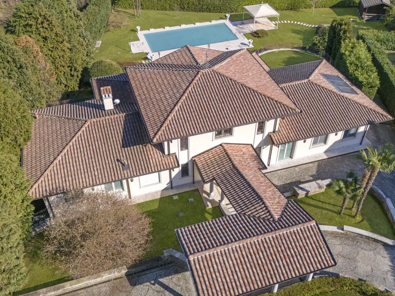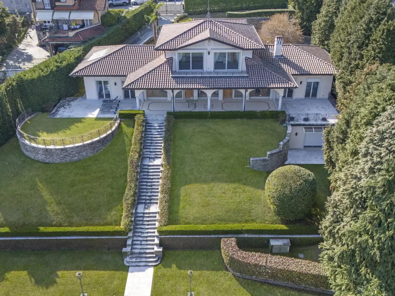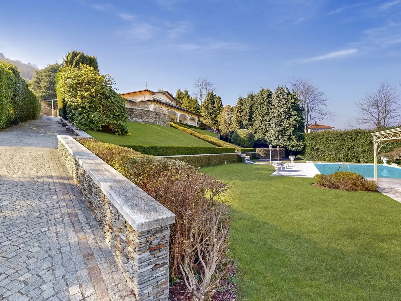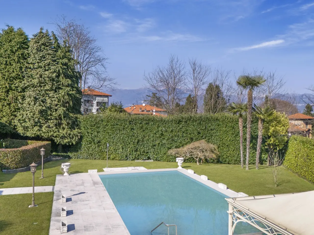 In a dominant and private position, just minutes from the center of Stresa, stands this exclusive luxury lake-view villa, surrounded by greenery and overlooking one of the most spectacular views of Lake Maggiore. A unique property of value, ideal for those seeking an elegant and modern residence in Piedmont, perfectly integrated into the landscape. Built on a 3,460-square-meter plot, this exclusive property in Stresa is the result of the design of a leading Italian engineer and the construction by a major local company. The result is a beautifully designed villa that blends classic architecture and state-of-the-art living technologies, designed to ensure maximum comfort. The villa is spread over a total area of about 500 square meters distributed on three levels, with bright rooms and luxury finishes: parquet floors, marble tiling, large panoramic windows framing the breathtaking view of Lake Maggiore and the town of Stresa. The main floor welcomes with a dramatic entrance with two large columns leading to the large living room, overlooking a covered terrace, perfect for lake view breakfasts or sunset dinners. The kitchen, modern and functional, is separate and connects with the living area. Completing the floor are two double bedrooms with walk-in closets and en suite bathrooms, a fitness area with a terrace-easily convertible into a third bedroom-and a service bathroom. On the upper floor is the master suite, an exclusive sleeping area consisting of a master bedroom with private terrace, large walk-in closet, designer bathroom and a private study, ideal for working from home in luxury and absolute privacy. The basement floor houses an independent apartment for service personnel. It includes a living area with kitchen and dining room, master bedroom with private bathroom and a separate terrace. Also present are a wine cellar and a technical room with boiler. The well-kept garden, planted with fine essences, houses a heated swimming pool with solarium, a wooden gazebo, outdoor shower and a relaxation area from which to enjoy the panoramic view of Lake Maggiore. The property also includes a wooden tool shed and a separate garage with two covered parking spaces. From a technological point of view, the villa is equipped with the most modern facilities: underfloor heating, controlled mechanical ventilation system, centralized air conditioning, solar panels, electric shutters and awnings, and state-of-the-art alarm system. This luxury villa for sale in Stresa is the perfect solution for those looking for a prestigious property on Lake Maggiore, ideal as a first home or summer residence. An authentic charming retreat where you can live immersed in nature, without sacrificing style, innovation and tranquility.