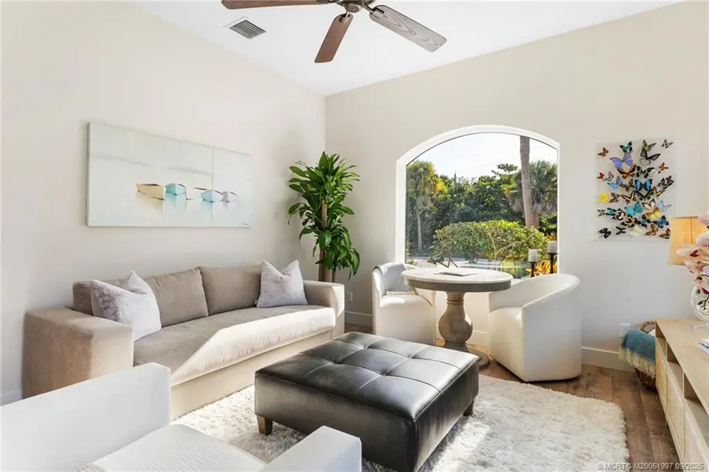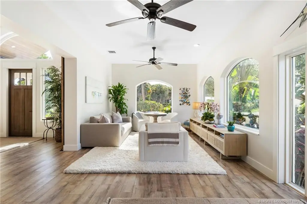 Undergoing a meticulous remodel, this Downtown Stuart-area home exudes true Florida style with functionality. Pride of ownership is felt the moment you cross the front door and are greeted by the soaring ceilings. New PGT impact glass windows and doors, a reconfigured kitchen with large gathering island, and bar area beckon the true entertainer. Separate living room offers picture window views of the lush landscaping. Additional sitting area with accent fireplace. Garage doubles as a split air-conditioned life/workspace with EV charging. Outside, the home shines day or night, with multiple seating areas, plunge pool, gas-fed firepit, and water feature. Upgrades include home back-up generator, tankless water heater, 2023 new seamless metal roof, 2020 AC dual home zones, owned solar panels, and SPAN smart home panel. Open cell spray foam insulation in house and garage. A bonus, 40-plus foot dock at the Outrigger Harbour Marina (Jensen Beach) & 24k lift offered for $325,000.