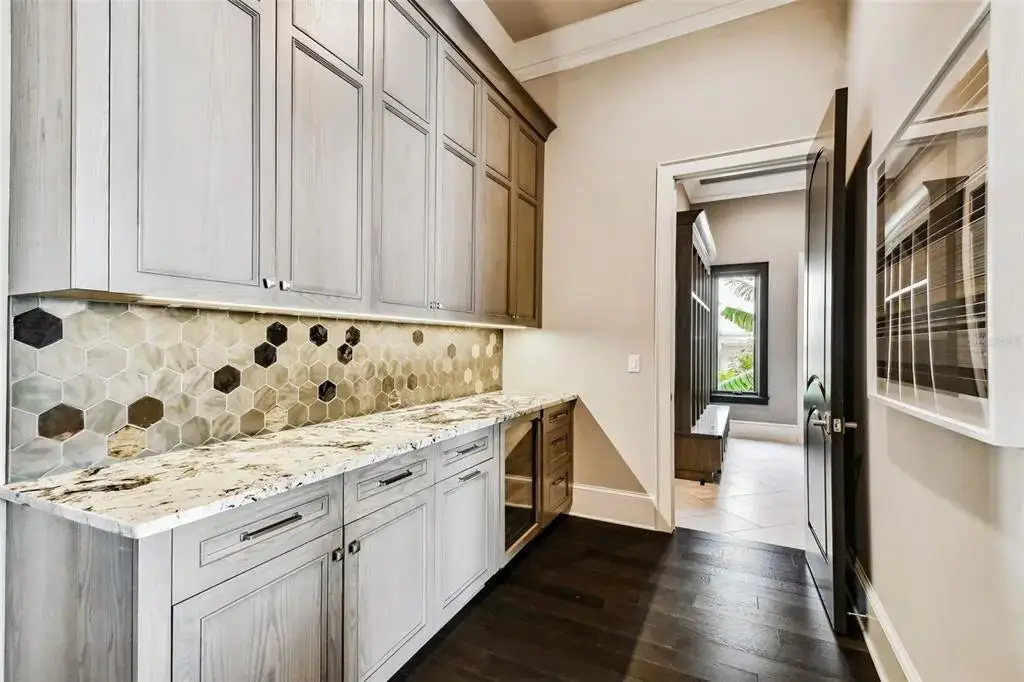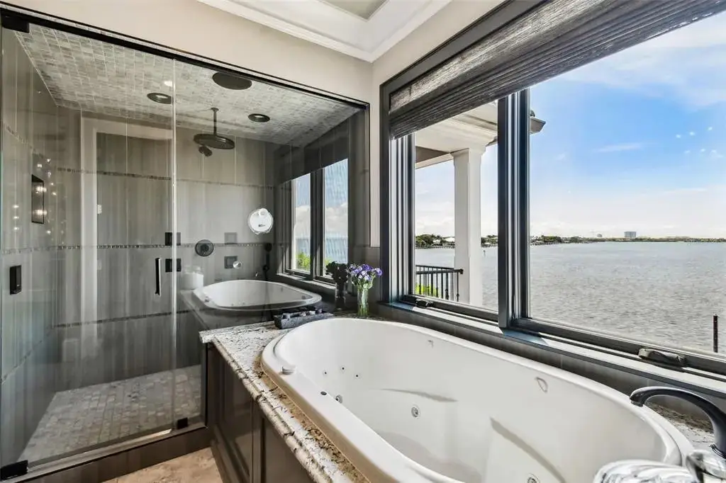 Experience the epitome of luxury in this custom-built waterfront estate by Bayfair, offering unobstructed views of Tampa Bay and beyond to downtown St. Pete and an exceptional blend of modern comfort and timeless elegance. This home is meticulously designed to capture the beauty of its surroundings while providing unparalleled luxury. Grand Entrance: As you step through the front door flanked by copper gas lanterns, you're welcomed by a dramatic two-story foyer featuring a stunning curved stairwell, setting the stage for the exquisite craftsmanship found throughout the home. Open-Concept Layout: The expansive, light-filled living space flows seamlessly, perfect for both grand entertaining and intimate gatherings. A formal dining room offers an elegant setting for hosting, while a nano-wall of windows provide breathtaking views of the water. It really makes you say WOW when you walk inside. Gourmet Kitchen & Casual Dining: The heart of the home, the kitchen, is equipped with Wolf and Sub-Zero appliances, custom stained light grey oak cabinetry, a spacious walk-in pantry, and a butler’s pantry with a wine fridge. The oversized island is perfect for meal prep and casual seating, while the adjacent casual dining area offers a bright, informal space to enjoy everyday meals with stunning views of the bay. Main Level Amenities: The first floor includes a guest bedroom with a full pool bath, a powder bath, and a mudroom/drop zone, offering convenience and practicality. Entertainment Zone: A dedicated entertainment area features a golf simulator, bar, and media room, creating the perfect space for hosting gatherings or enjoying family movie nights. Outdoor Living: The outdoor space is a true oasis, with a resort-style pool, spa, firepit seating area, and a wide covered porch ideal for dining and lounging. The outdoor kitchen, complete with a Alfresco built-in grill, makes outdoor entertaining effortless. Primary Retreat: The upstairs primary suite is a private sanctuary, featuring a sitting area with access to a private balcony offering panoramic views of Tampa Bay. It boasts a walk-in closet for two with a large island for additional storage, a spa-like bath with dual vanities, a steam shower, a jacuzzi tub, and his-and-hers water closets. Upstairs Features: Four additional en-suite bedrooms, each with spacious closets, provide ample space and privacy, a custom office with modern oak paneling and views of the bay offers a tranquil workspace. A large utility and laundry room makes those chores effortless. Garages & Storage: With split garages—a 1-car and a 2-car garage—there's room for car lifts and ample storage for vehicles or other belongings. Additional Features: A whole-house generator ensures you’re always comfortable, while high-end finishes, smart home Elan and Lutron technology systems, and energy-efficient features, such as high-impact windows and tankless water heater along with whole home water filtration system are just a few of the upgrades that make this home special. In summary, this home has it all with a floorplan that meets all the needs of a modern lifestyle as well as the construction quality and durability to make living on the open bay effortless.