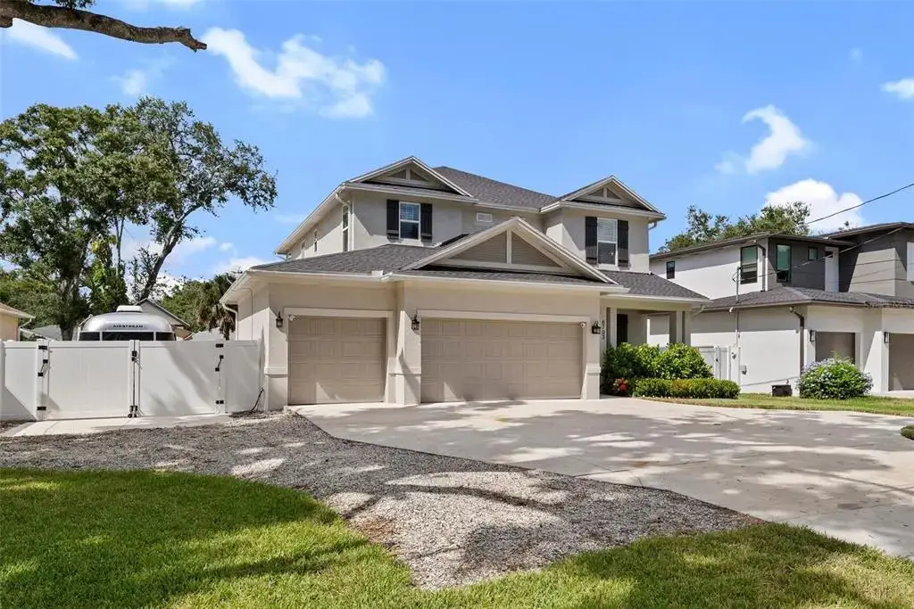 Welcome to this impeccably built 2023 POOL home, perfectly situated on an oversized lot in a no-flood zone in the heart of South Tampa. Designed with modern luxury, energy efficiency, and everyday comfort in mind, this spacious residence truly stands out. Step inside to an open and inviting floor plan featuring 4 bedrooms, 3 full bathrooms, and a versatile bonus loft. The first-floor bedroom and bath are ideal for guests or multi-generational living. The gourmet kitchen is a chef’s dream with stone countertops, a stainless farmhouse sink, high-end appliances, and oversized pantry. The open-concept great room provides flexible space for dining, entertaining, or a home office, while the adjacent family room creates a cozy space for everyday living. Outside, enjoy your private backyard oasis with a covered lanai, beautifully designed pool, and large fenced yard—perfect for relaxing or entertaining. A full working shed adds extra utility, and there’s additional parking for a boat or RV. Upstairs, the primary suite offers a spacious retreat with a spa-like bath featuring a soaking tub, walk-in shower, and large custom closet. Two guest bedrooms share a stylish full bath, and the laundry room includes high-end washer and dryer for added convenience. Additional highlights include hardwood floors, plantation shutters, impact windows, and a 3-car garage with ample storage. Located just minutes from South Tampa’s favorite destinations—Westshore Marina District, Hula Bay, Cru Cellars—and offering easy access to Downtown Tampa and St. Petersburg, this home offers the perfect blend of luxury and lifestyle.