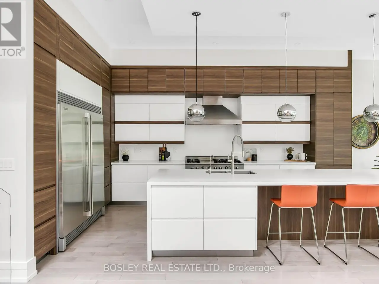 Where substance meets style, and opportunity stretches as far as the lot line.This striking modern residence on Broadview isn't shy about making a statement. The address comes with instant access to the city and interiors that feel miles away from it. With nearly 4,500 square feet total of modern splendour. Soaring ceilings, and walls of glass. Natural cascades of luminance. Sunlight pours through skylights and floor-to-ceiling windows, while custom millwork and sleek finishes give the interiors a refined edge. The main floor revolves around an open great room anchored by a chef’s kitchen with a twelve-foot island and professional-grade range - the kind of space where family breakfasts, dinner parties, and late-night conversations naturally unfold. Upstairs, three bedrooms each have their own ensuite (because sharing is overrated), including a primary suite with a walk-through dressing room, spa bath, and balcony. Downstairs, a full walkout lower level expands the homes possibilities with a massive second kitchen, additional bedrooms, heated floors throughout, and even a soundproof studio or gym. Step outside and the lots depth reveals itself: nearly 170 feet of landscaped privacy, mature trees, and room to dream. And those dreams? Already approved. Plans for a 2,000 square foot Garden Suite with pool and cabana are in place; as well as a fully severed secondary lot on Hillside Drive with approvals for a 3,300 square foot detached home [visit the site for renderings, video, plans and details]. Keep it all for yourself, or lean into the development potential - either way, you're winning. Broadview gives you quick access to transit, the Danforth, and downtown, while inside you'll find quiet, comfort, and a home built to last. Big on space, bold on design, and generous with options for the future. This is more than a house. It's a whole playbook of possibilities. Download to Buyer Book for plans, details and so much more. (id:7434)