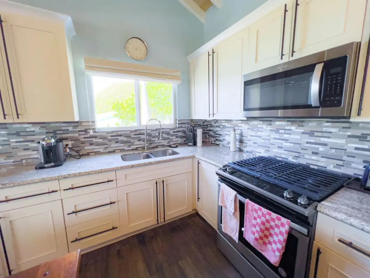 The 2nd house, is located a little further up the driveway, but landscaping makes it almost invisible from the main house. 2 bedrooms, 1 bathroom and an open plan living room kitchen make this an ideal vacation cottage or long term rental unit. Like the main house, design is centered around outside living and this house has a patio to the rear and ample covered deck to the front. Please note that this unit is currently rented long term and the furniture belongs to the tenant.
