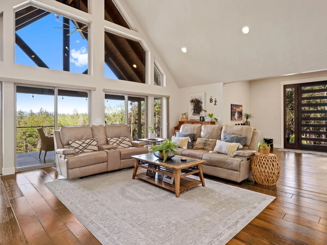 Mountain Lodge Retreat!! Custom Home is app 3157 sq ft, 4 bed, 4.5 baths, with additional Studio D/S of app 390 sq ft for visitors or family. Perched perfectly on 3.43 acres overlooking the valley, hills, and the city in the distance. Upon entry, greeted with soaring vaulted L/R, gas fireplace, expansive windows that allow for stunning views, natural light, and access to the open beam covered porch. Primary ensuite, is vaulted as well, with its own gas f/p & side porch. Main bath offers heated tile flooring, curb less oversized shower, soaker tub, spacious walk in closet, and water closet. Expansive kitchen is equipped with high end appliances designed for both serious cooking and entertaining. The loft hosts a 2nd ensuite, and seating area. The main floor also offers a spacious dining room, 2 b/r full guest bath, 1/2 bath for guests, and large laundry room. There is interior & exterior access to the fully equipped guest studio quarters below. Property is fenced, with lush back lawn.