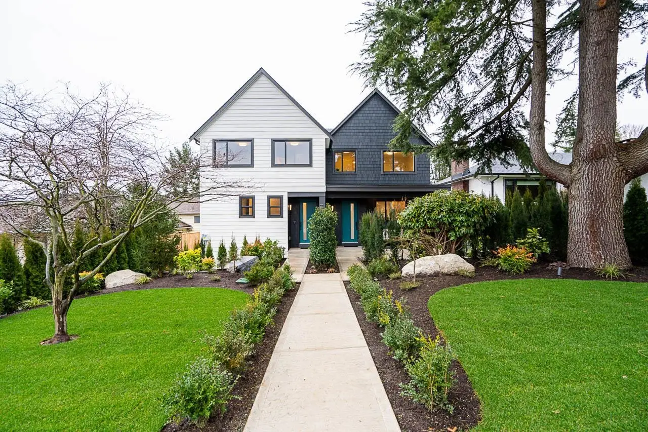 New modern 1/2 duplex built by a long established European builder. Stunning mountain and water views from both upper decks. Large top floor flex/office/bdrm. The principle bedroom features a deck, ensuite and walk-in closet. A laundry room and further bedroom and bathroom complete the upper floors. The elegant, high ceilinged Great Room has a gourmet kitchen with Fisher & Paykel appliances, an eat up centre island and a pantry wall, all flowing seamlessly into the living/dining rooms. The mudroom has custom built-ins. Fabulous, private covered patio has great sun. Landscaping features irrigation, granite walls, lighting & feature trees. Rear yard is fenced and has a single car garage. 1 bdrm legal suite downstairs. Great family neighbourhood with easy access to Hwy 1 and downtown.