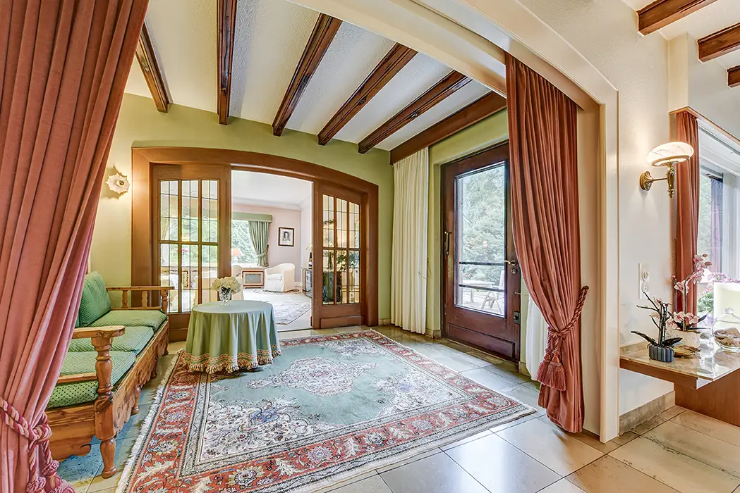This spacious single-family home, built in 1954, sits on an impressive plot of approximately 5,860 m² and, with approximately 630 m² of living and usable space, offers ample space for individual lifestyles. The property is ideal for families who prefer living close to nature and value spatial diversity and privacy. The total area is divided into a total of 10 rooms, which, thanks to their attractive architecture and well-thought-out floor plan, offer flexible usage options. You will be warmly welcomed in the inviting entrance area, which offers ample space for a cloakroom and reception area. From here, you will access the various living areas, designed for spaciousness and offering numerous options for individual living ideas. The living space on the ground floor is approximately 241 m² and impresses with three spacious bedrooms, an extra-large living room with an adjoining piano room, a representative, spacious dining room, and a separate kitchen. In addition, there is a master bathroom with two showers and a sauna, as well as two separate guest toilets, which together offer first-class living comfort for the whole family. The oversized sun terrace is accessible from the hallway via the dining room. From the terrace, you can enjoy a magnificent view of the expansive garden and the adjacent forest. The garden boasts mature trees, numerous shrubs, and plants – ideal for creative landscaping. A pond at the rear of the property provides an additional, tranquil atmosphere. Adjacent to the property is a spacious garage with a basement, perfect for tradespeople and hobby gardeners. A toilet and another room offer additional comfort for every user. The attic is comfortably converted and offers approximately 165 m² of usable space. Here, you'll find ample space for your hobbies, or you can use it as a combined living and working area under one roof. Connections for a kitchen are available, and a modern bathroom completes the offering. The spacious garden offers a wide range of possibilities for individual design. It offers space for both play areas for children and quiet areas for relaxing hours in the fresh air. The size of the property also offers potential for ambitious garden projects. A spacious parking area in front of the garage is available for your vehicles. The property is located in a quiet residential area with good transport links. Shopping facilities, schools, and public amenities are easily accessible. The property is well-maintained, in keeping with its age, and offers scope for individual modernization options. The furnishings are also appropriate for its age, allowing for flexibility in design according to your wishes.Thanks to its size and versatility, this single-family home is ideal both as a long-term family residence and as a home for both living and working under one roof. Get a personal impression of the design options and see for yourself the exceptional space available during a viewing. We would be happy to provide you with further information and arrange a viewing appointment. Read more Location Description This property is located amidst picturesque nature, right on the edge of the forest. From here, beautiful walks and bike rides beckon. Grafenmühle, the Haniel spoil heap, the Gasometer, and Oberhausen Castle are all within easy reach by bike or car. The nearby town center of Königshardt offers numerous shops for daily needs. Schools and kindergartens are also nearby. Various restaurants and an ice cream parlor complement the dining options. A nearby bus line provides easy access to surrounding towns, while short journeys to the A3, A516, and A2 motorways offer additional convenience.