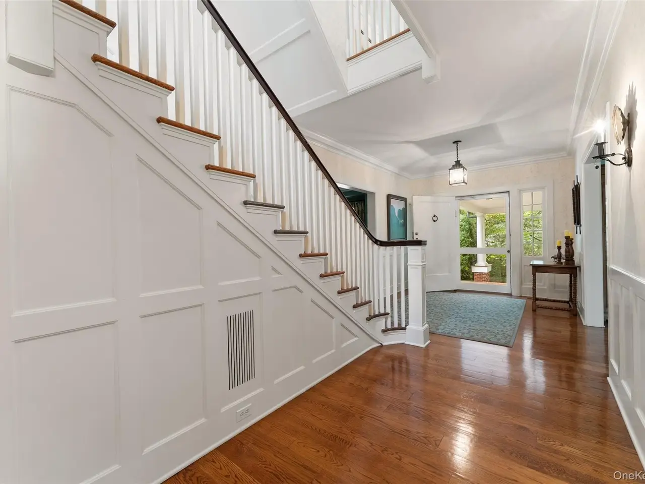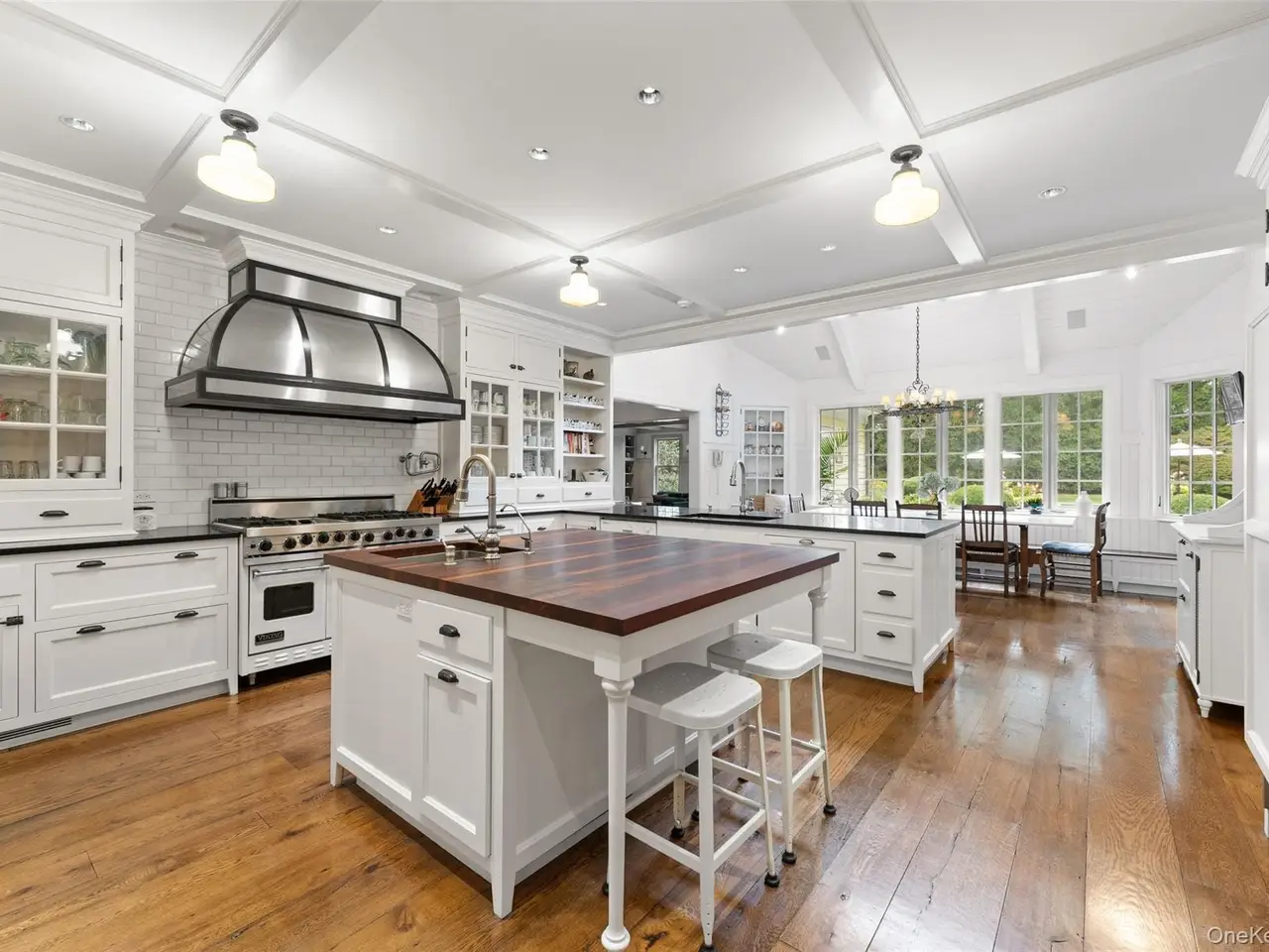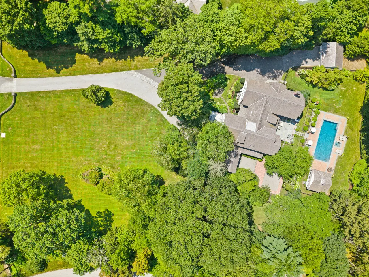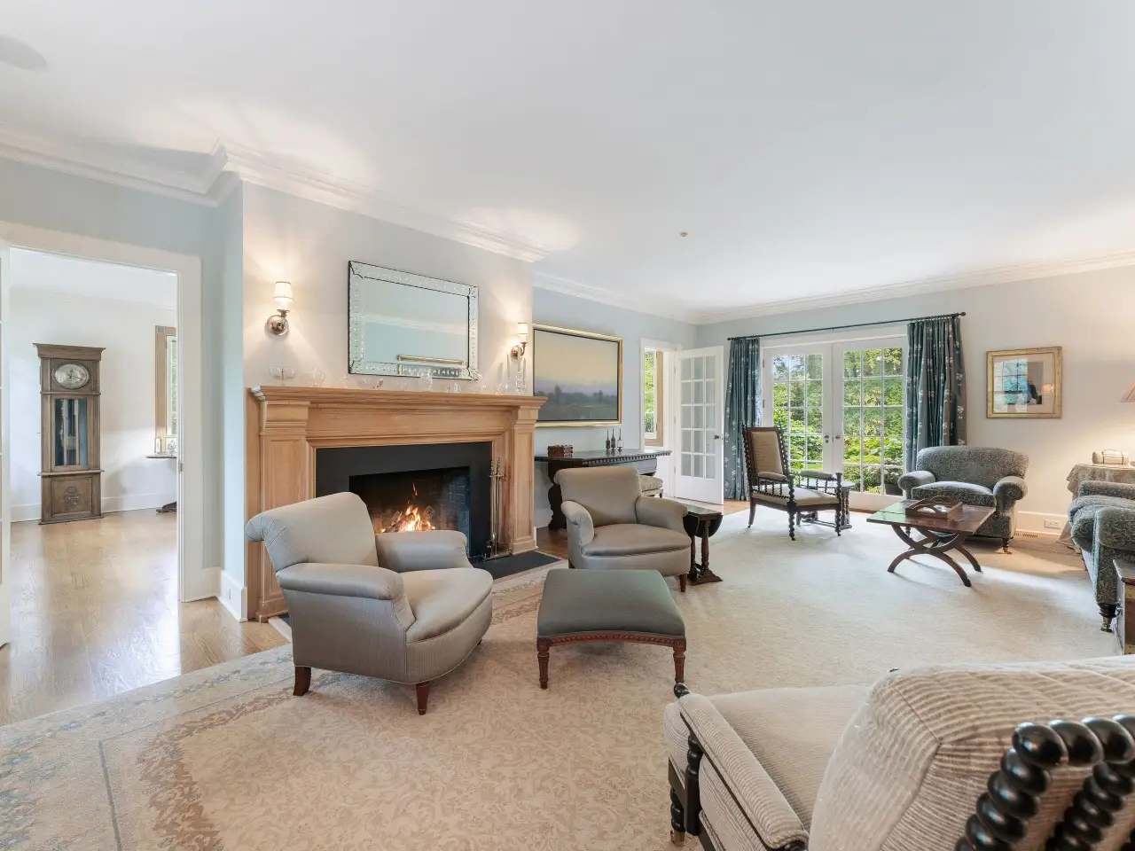 This spectacular six-bedroom home in the coveted Grange section of Greenacres, sits on 2.61 sweeping, park-like acres. Rebuilt in 2001 with attention to detail and exquisite finishings, this home blends modern luxury with classic warmth. The foyer opens to a formal living room with a fireplace and an adjoining study. A gracious dining room connects to a butlers pantry and chefs kitchen with large island and views of the patio and pool. Enjoy seamless indoor-outdoor living with a screened-in porch, family room with French doors, and access to the patio, gardens, pool, hot tub and cabana with half bath and laundry. Upstairs, a magnificent primary bedroom suite offers an elevated ceiling, luxurious primary bathroom, expansive closet, and a second office. An additional family bedroom includes a fireplace, en-suite bath, and oversized closet. Two more bedrooms share a Jack and Jill bath, while a fifth bedroom suite with a full bath is ideal for guests. A large central playroom and spacious laundry room complete the second floor. The third floor has another charming bedroom, full bath, and flexible space for a home office or playroom. The lower level offers an additional 1376 square feet and boasts soaring ceilings, a grand recreation room, movie theater, kitchenette, gym, and half bath. The property also includes a two-car attached garage with mudroom entry, second powder room and a two-car detached garage. Private, elegant, and reimagined for modern living, 65 Garden is a true Greenacres gem!