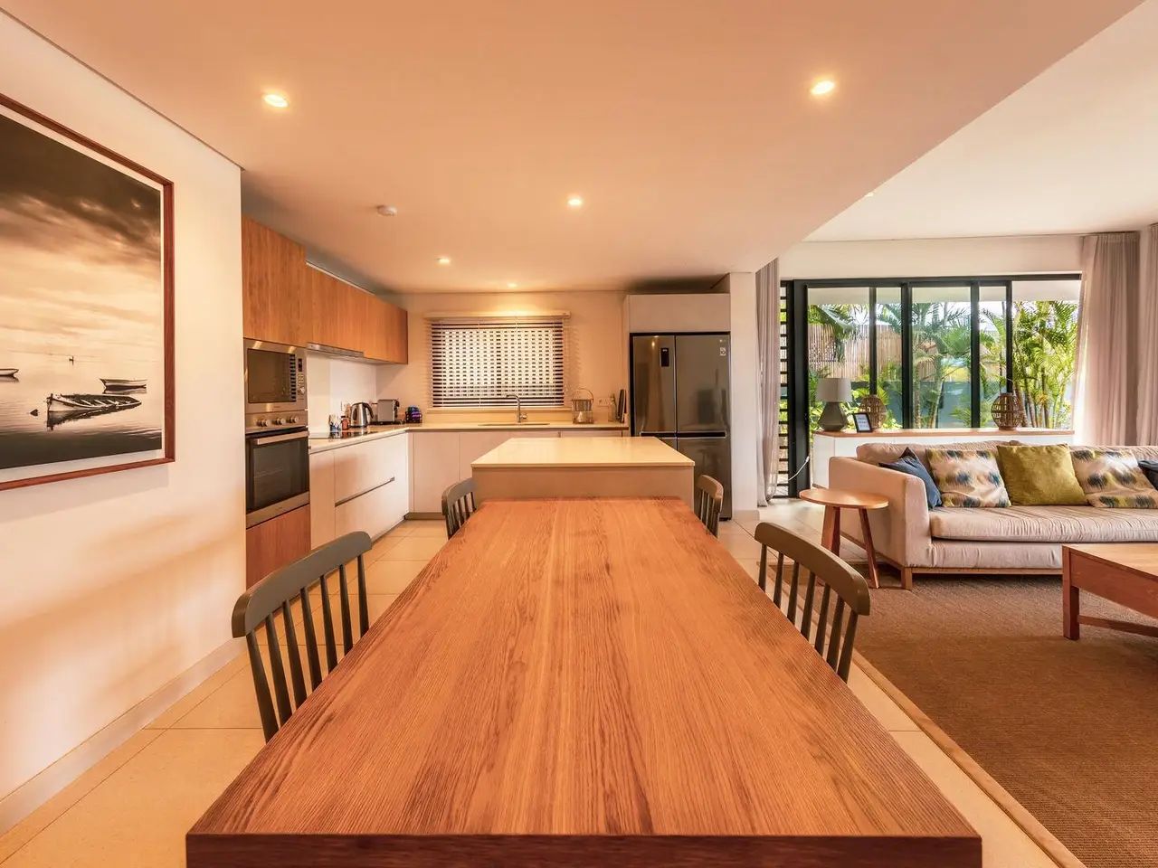 Located within the exclusive WaterClub development on the west coast of Mauritius, this 3-bedroom apartment offers the perfect balance of modern tropical design, open-plan living, and direct lagoon access. Designed for discerning buyers seeking a refined lifestyle in a premium waterfront setting, the residence seamlessly blends indoor comfort with outdoor serenity. Bright, Open Living Spaces with Seamless Indoor-Outdoor Flow The apartment features a generous open-plan layout, comprising a stylish living area, dining space, and a fully fitted Italian kitchen. Floor-to-ceiling glass doors open onto a large private terrace or landscaped garden (depending on the unit), allowing abundant natural light and creating a true sense of flow between interior and exterior living. Three Well-Appointed Bedrooms The master suite offers a tranquil retreat with a private bathroom, built-in wardrobes, and direct access to outdoor space. Two additional bedrooms provide ample room for family or guests and share a modern, well-designed bathroom. The interiors are crafted with premium materials, clean lines, and a soothing palette, creating a warm and elegant ambiance throughout. Luxury Amenities and Resort-Style Services As a resident of The WaterClub, you benefit from: A 16-meter swimming pool with pool house, Landscaped gardens, outdoor lounge, fire pit, and barbecue area, A private pontoon (subject to permit) offering direct access to the marina and river, An exclusive 2-year Boat Club membership, including access to a Beneteau 7.7 Spacedeck boat, kayaks, and stand-up paddleboards, Optional custom interior design packages by Namakoa Design Studio. A Rare Waterfront Lifestyle in a Prime Location This 3-bedroom apartment at The WaterClub offers an exceptional opportunity to own a luxurious, low-maintenance residence in one of Mauritius’ most sought-after coastal locations. Whether for permanent living, a holiday retreat, or an upscale rental investment, it promises a lifestyle defined by comfort, freedom, and elegance on the water.