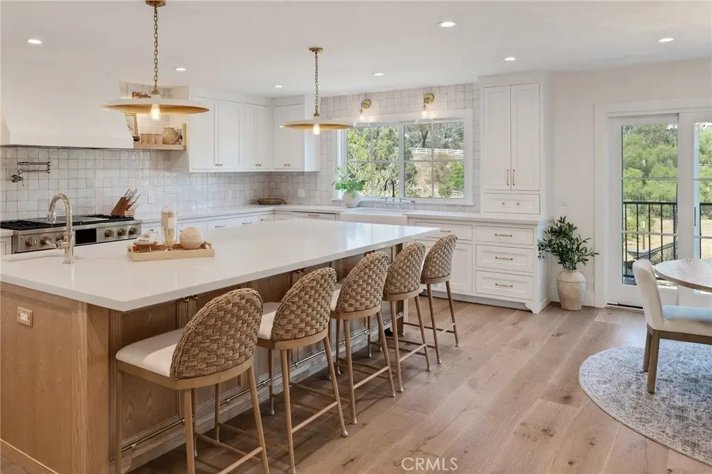Welcome to this exquisitely remodeled ranch home located in the prestigious community of Rolling Hills Estates. Nestled at the end of a peaceful cul-de-sac surrounded by mature trees and scenic views, this turnkey residence effortlessly combines timeless charm with modern luxury. Completely updated from top to bottom, this 4-bedroom, 4-bath home features a bright, thoughtful floor plan with designer finishes throughout. The chef’s kitchen boasts custom cabinetry, marble countertops, a large center island, and MONOGRAM luxuxry appliance package — perfect for everyday living and entertaining. The living and dining areas are enhanced by wide-plank engineered hardwood flooring, recessed lighting, and expansive windows that invite natural light and highlight the home's serene setting. The spacious primary suite offers a spa-like ensuite bathroom with a walk-in shower, soaking tub, dual vanities, and a generous walk-in closet. The secondary bedrooms are equally well-appointed and offer ample space and comfort. Downstairs, you'll find a spacious family/game room complete with a custom wet bar & fireplace—ideal for game nights, movie nights, or relaxing with family and friends. This lower-level retreat also offers convenient access to the laundry area, a 3/4 bathroom and additional storage. Meticulously upgraded, and artistically crafted finishes are found at every turn. Enjoy California living at its finest with a expansive backyard retreat featuring several fruit trees and open space to entertain. This private sanctuary offers a rare opportunity to own over 30,000 sqaure foot large lot, country living with the patio for outdoor dining, and plenty of room for horses and a gate to the adjacent horse trail. Located in a family friendly and private neighborhood, close to Rancho Vista Elementary School, this is a home to treasure moments and watch the kids to grow up in a beautiful setting exploring trails with their pets. A three car garage and RV parking on the side are added bonus to this value packed home. Located near award-winning schools, equestrian trails, parks, restaurants, shopping, hospital, and golf courses, this move-in-ready gem offers the best of Rolling Hills Estates living. A rare opportunity—don’t miss it!