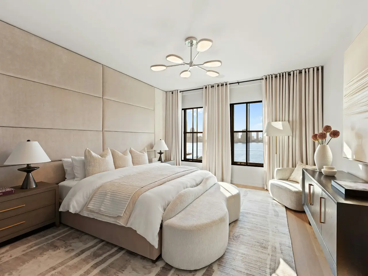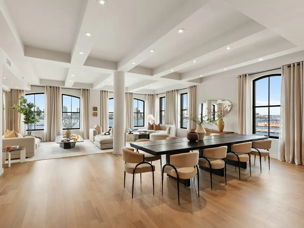 Introducing a luxurious home with 4 bedrooms plus an office and den, offering 4,120 square feet of meticulously designed living space, where elegance meets abundance. This exquisite residence has recently undergone a lavish, full-scale renovation, with painstaking attention paid to every detail. The corner living room offers breathtaking views of vibrant sunsets over the Hudson River through seven expansive arched windows, set against solid white oak wood floors. The kitchen is a masterpiece, featuring new custom white oak cabinetry complemented by Borghini Calcutta marble countertops and backsplash. It's outfitted with top-of-the-line appliances, including a Sub-Zero refrigerator, extra refrigerator drawers, and wine cooler, Miele dishwasher, Wolf cooktop, oven, and microwave, XO range hood, and a custom pantry. The river-facing primary suite offers captivating views and includes a magnificent walk-in closet with integrated lighting throughout all three closets and adorned with custom wall panels. The spa-inspired en-suite bathroom boasts heated Statuario Premier Carrara marble floors, a tub deck, Arabescato decorative wall tiles by Walker Zanger, and a new Kohler tub. Additional features include a new Toto toilet, RH vanity base, and Statuario Premier Carrara countertop, complemented by Water Works fixtures in polished nickel. Down a private corridor, you'll discover a stunning home office/library with a custom walk-in closet and two large windows offering sweeping northern views. The residence includes three additional spacious bedrooms, each with its own luxurious suite bath, complete with Carrara marble, Toto toilets, designer fixtures, and custom closets. A generous playroom/TV den, featuring a separate entrance and a custom-built mudroom, adds to the home's functionality. This impressive "smart" home is equipped with automated blackout shades, an integrated speaker system, three-zone central heating and air conditioning, and fully outfitted closets throughout. Situated in TriBeCa's historic district at 250 West Street, this landmark building from 1906 has been beautifully transformed into a collection of luxury condominiums. Residents enjoy unparalleled amenities, including a sophisticated lobby with a separate library lounge, a 61-foot swimming pool, a state-of-the-art fitness center, and a delightful children's playroom. The building also features a sprawling 5,000 sq ft rooftop terrace with panoramic views, sundeck, lounge, dining area, and a vegetable garden. Just across the street, Hudson River Park's Piers 25 and 26 offer an array of recreational amenities, including a children's playground, miniature golf course, beach volleyball courts, and more. Located just a few blocks from the Greenwich Hotel, Fouquet Hotel, and an array of downtown's finest dining destinations.