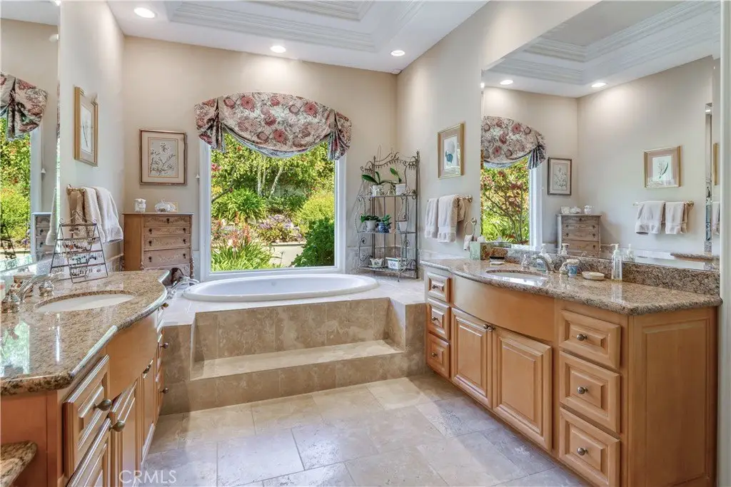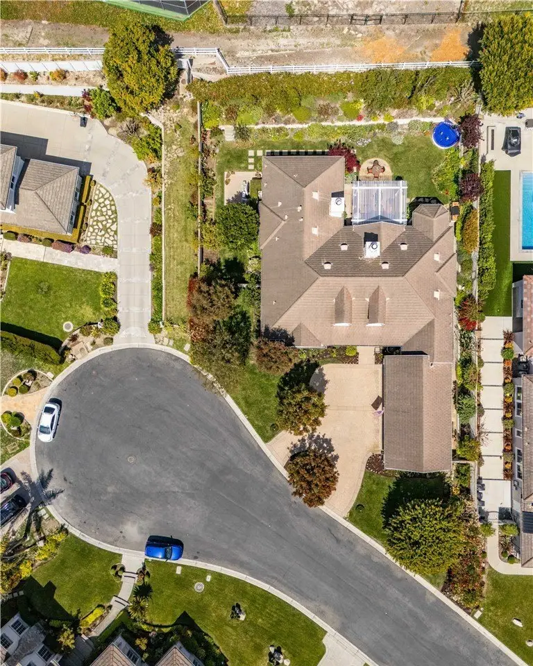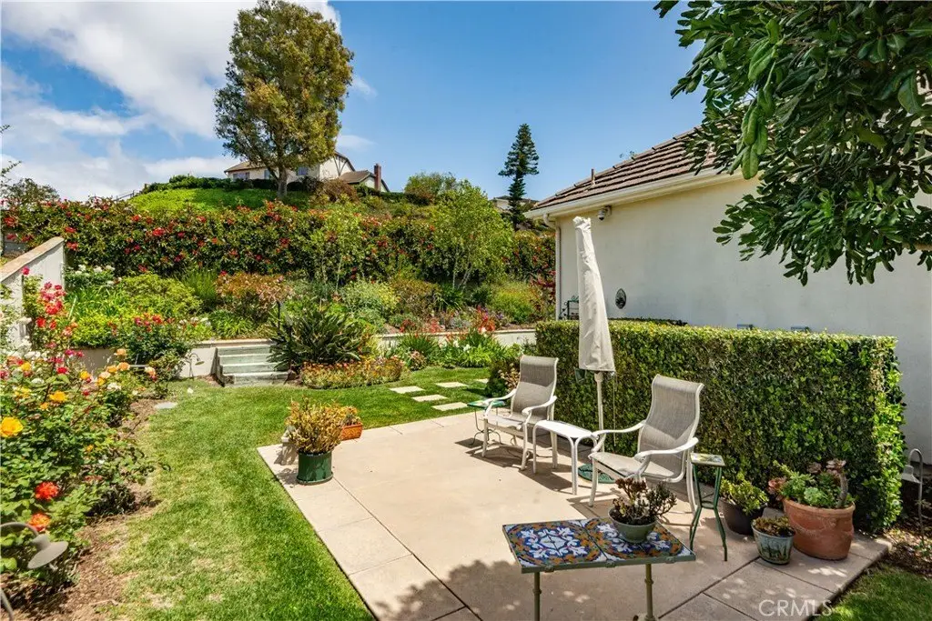 RARE OPPORTUNITY! First time on market in 25 years, beautifully maintained with pride of ownership from the original owner! Your chance to own and enjoy this single-level luxury turnkey residence nestled in the prestigious guard-gated community of Vantage Pointe. This exquisite property, one of only 67 homes in the development, offers four bedrooms and 3.5 baths in 3,334 square feet of living space on a 16,962 square foot oversized flat lot, located on a quiet cul-de-sac. Upon entering, you'll be greeted by an inviting open floor plan with high ceilings throughout. Straight ahead is the spacious living room featuring elegant custom coffered ceilings, hardwood floors, a fireplace, and large windows that fill the space with natural light, creating a warm and welcoming atmosphere. Off the living room is a sitting room, with the same hardwood floors, and shares the back side of the fireplace. French doors from the living room open to a back patio with a recently-built pergola with portable fire pit, a built-in BBQ, lawn area and beautifully manicured garden, and a tranquil fountain – perfect for outdoor entertaining. From the entry foyer, to the left, after passing the guest powder room near the entry, are the private living quarters featuring three well-appointed bedrooms, including an optional office, and a secluded luxurious master suite. Two of the bedrooms share a Jack-and-Jill bathroom for added convenience. The primary suite is secluded, while taking advantage of the beautiful backyard, and features two giant walk-in closets, access to the back patio, a fireplace, and an en-suite bathroom with dual vanities, a walk-in shower, a jacuzzi tub, and a separate toilet room with a bidet. Off the entry foyer and living room area, the gourmet kitchen is a chef's dream, equipped with two ovens, two microwave ovens, two dishwashers, a Sub-Zero refrigerator, ample cabinetry, and granite counters, and includes a separate breakfast nook overlooking the backyard. Off the kitchen is a dedicated laundry room with sink and storage, that leads to the four-car garage, with plenty of cabinets for storage, and includes a workbench. The home includes a 6-camera security system and whole-home water filtration system. This exclusive community is conveniently located near stores, Golden Cove Shopping Center, Terranea Resort, and world-class golf and tennis clubs. Schedule a private tour today to experience the exclusivity, luxury and comfort that 48 Santa Cruz has to offer.