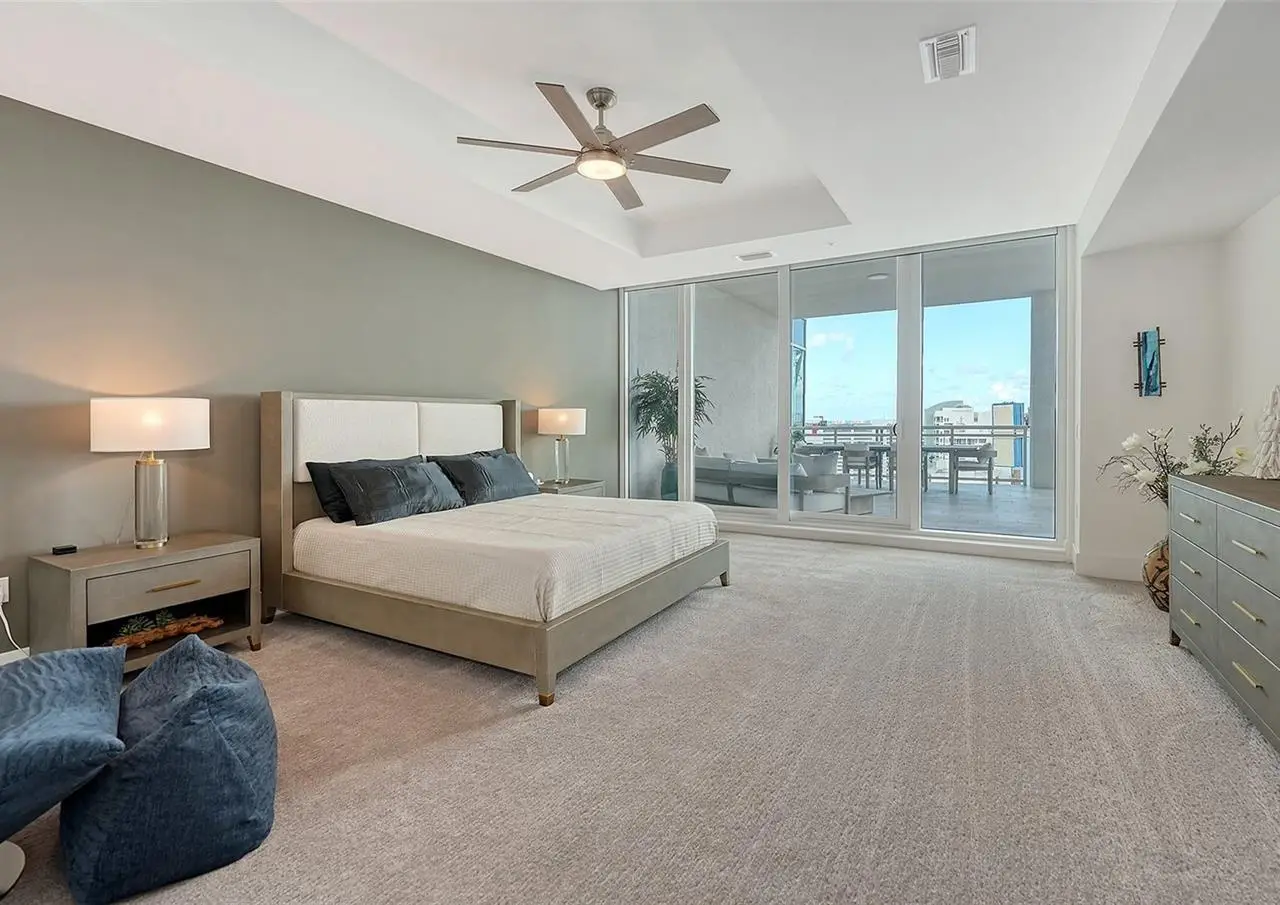 Welcome to the BLVD, where breathtaking views define the home experience! This architecturally stunning, modern condominium stands perfectly positioned in the Bayfront District of downtown Sarasota. Indulge in a luxurious residence soaring above Sarasota Bay, ideally located on the 17th floor, featuring expansive glass walls that offer breathtaking and unobstructed bay views to the north and west, and city views to the east. At this premier address, residents are among the elite who are privileged with an exclusive standard of living. This iconic building offers high-quality interior finishes and advanced coastal construction and design. From the moment you step through the entrance of the private access elevator, the tone is set for the entire space and lifestyle. The flow-through floorplan highlights magnificent bayfront and city views, with impact windows and sliding glass doors leading to several large terraces. Elegant tile flooring and glass railings create a seamless connection between the indoor and outdoor spaces, framing boundless vistas. The expansive great room boasts lofty ceilings, custom lighting, and large tile flooring - ideal for entertaining guests. A culinary showpiece, the kitchen features designer tile backsplash that complements the sleek cabinetry and designer lighting, adding sophistication throughout. An oversized island, complete with high-end quartz countertops and ample storage, anchors the space. For wine enthusiasts and culinary connoisseurs, this remarkable kitchen also features top-of-the-line Thermador appliances with a 6-burner gas cooktop, built-in wall oven, wine fridge, and two spacious pantries with custom shelving. The expansive primary bedroom is complete with two exquisite custom walk-in closets, with a spa-like bath boasting a soaking tub and an oversized glass shower. Two oversized bedroom suites feature private terrace access and luxurious spa-like baths. A powder room and spacious laundry room round out the interior. Quality and comfort are at the forefront, evident with a state-of-the art smart automation system with Lutron lighting, and motorized shades system. Additional highlights include three glass-railed terraces, custom lighting and 8' solid-core doors. BLVD hosts only forty-nine residences and sets itself apart with its unparalleled hotel-inspired amenities and full-time concierge. Residents will enjoy a social club room with a service bar, well-equipped fitness center, conference room, temperature-controlled wine room with private lockable showcases, indoor driving range, and a dog grooming room. The expansive outdoor terrace offers additional outdoor lounge seating and convenient pet facilities. For those seeking ultimate relaxation, the rooftop, home to the best rooftop pool area in Sarasota, features a zero-horizon pool, lounge seating, covered outdoor summer kitchen, and fire pit. 1702 embodies the essence of Sarasota's lifestyle, where luxury meets sophistication. Strolling on the waterfront, exploring the diverse cuisine, or attending the cultural events in downtown Sarasota makes the BLVD a destination as well as home. And COMING SOON-1000 NORTH Sarasota, an exclusive members-only club located on the bottom floor of the BLVD, and centered in the heart of the city's cultural corridor. This private retreat will offer elevated dining, handcrafted cocktails, personalized concierge services, and private wine storage, delivering a blend of luxury, comfort, and sophistication.