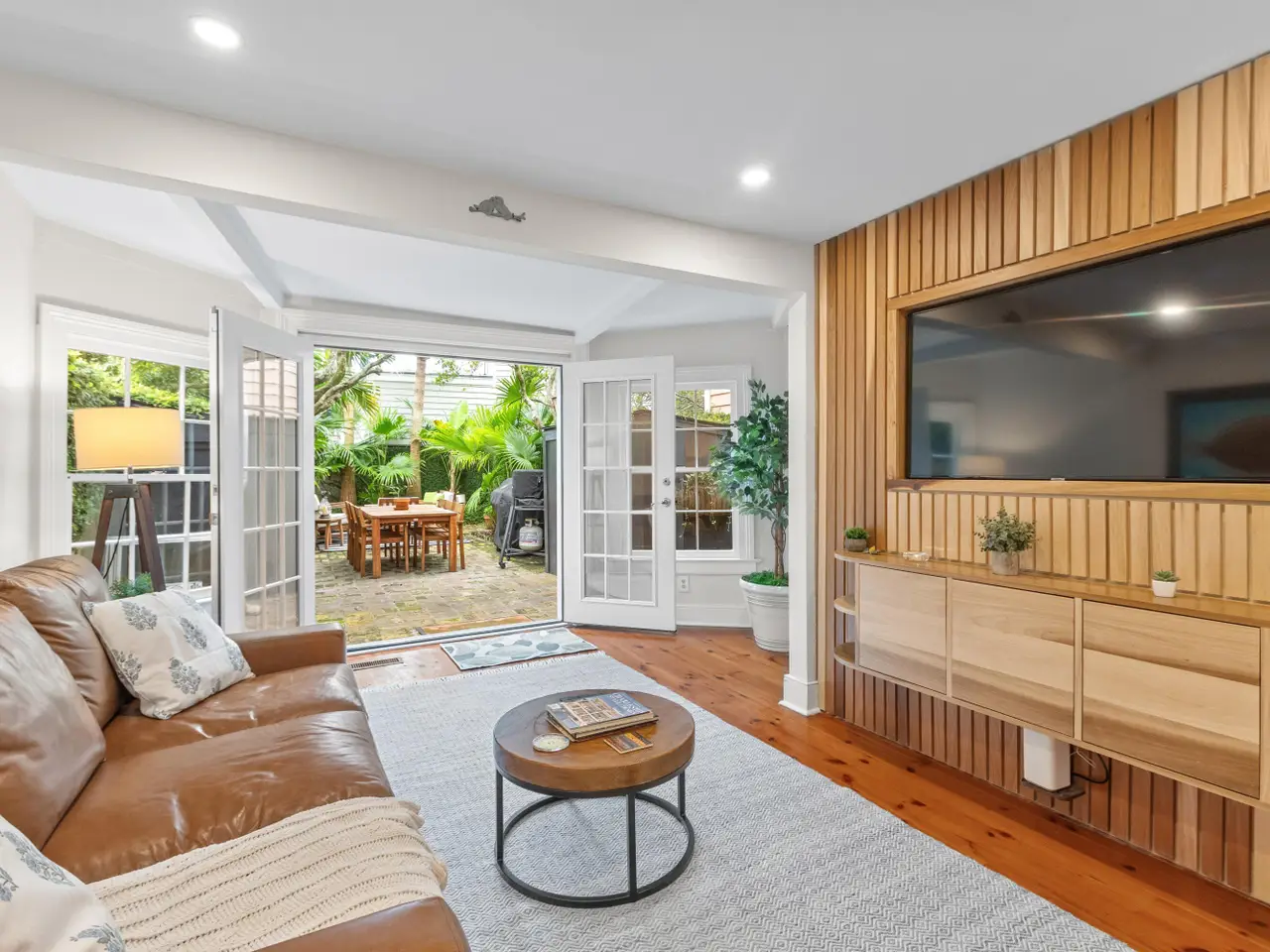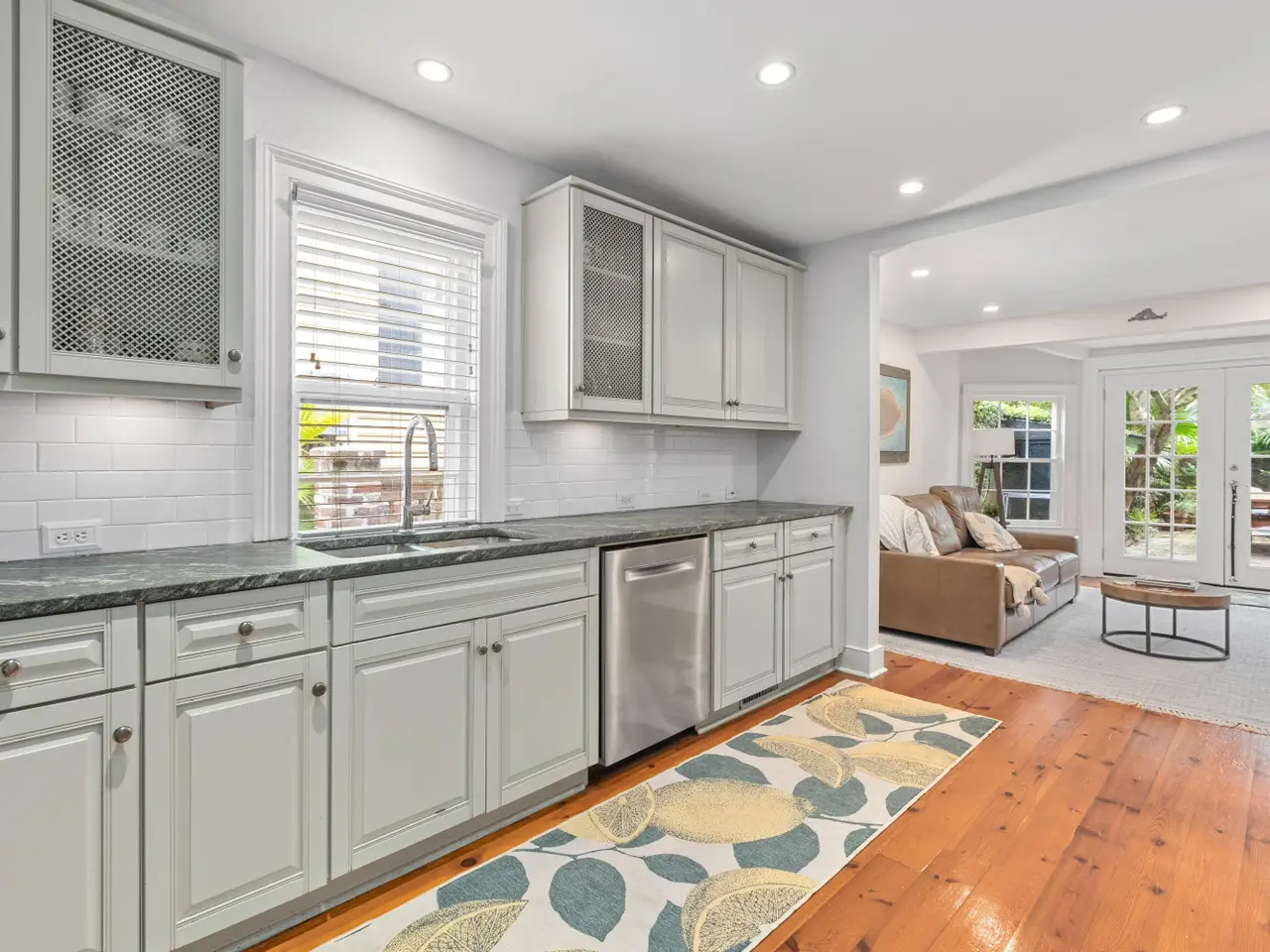 Classic Charleston Single on lower Tradd Street, between King and Meeting. It has been previously updated while retaining its charm and history. You enter through the front door into a formal living room with a fireplace. The separate dining room offers cozy banquette seating. The generous kitchen and sitting room lead to a magical private & gated courtyard. The courtyard offers enough room for multiple sitting areas and configurations. A half bath is on the main floor. The three bedrooms are on the second floor. Two of the bedrooms feature ensuite baths. The master bath is spa-like with a large soaking tub. The laundry area is conveniently located on the second floor. On-street parking for two vehicles through permits.