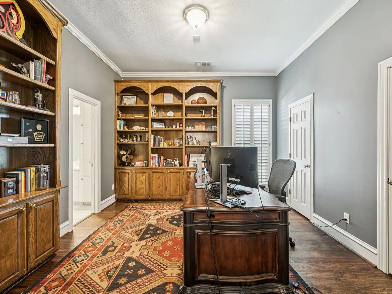 Timeless elegance meets everyday livability in this custom-built traditional home, perfectly poised on a 79 x 194 lot in the heart of the White Rock Elementary neighborhood. Overlooking the rolling greens of Flag Pole Hill, this residence was crafted with exceptional attention to detail from its gleaming hardwood floors and crown molding to the inviting den with wood-beamed ceiling and French doors framing views of the backyard oasis. Step outside and fall in love with the covered outdoor living area, complete with a fireplace for cool evenings, a classic rectangular pool, and a large, turfed play area that's as functional as it is beautiful. Every inch of the landscaping and outdoor lighting has been thoughtfully curated for beauty and ease. Inside, every bedroom offers an en suite retreat, while the spacious playroom and dedicated office provide room for work, play, and everything in between. With its gracious flow and timeless craftsmanship, this home embodies what it means to live beautifully a seamless blend of comfort, character, and charm in one of Dallas' most sought-after enclaves.