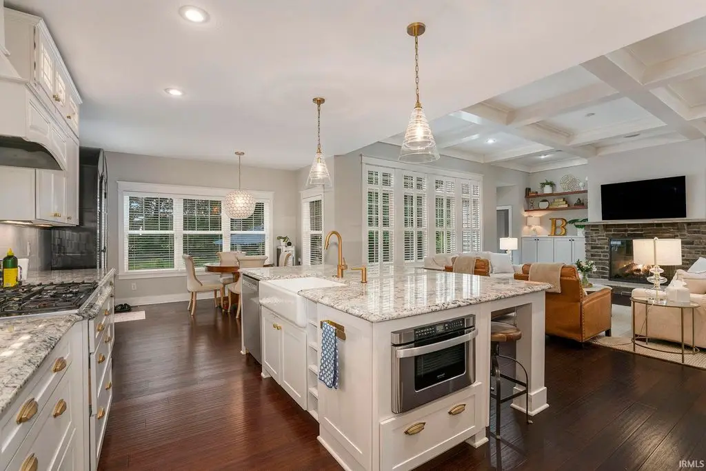 Welcome home to this stunning 5 bedroom executive ranch, located on a beautifully landscaped corner lot in Granger's Copperfield. Step inside to find an open yet cozy family room featuring coffered ceilings, a gas fireplace, and rich bamboo hardwood flooring. Gourmet kitchen includes granite countertops, double ovens, an oversized built-in refrigerator and large center island. Tasteful, high-end finishes throughout. Spacious mudroom and laundry area, accessible through a convenient side entrance, adds to the home's thoughtful layout. Primary suite offers a serene retreat-complete with an elegantly updated bathroom. Jack and Jill suites, each with generously sized closets, can be found on each level of the home. Walkout lower level expands your living space and opens to a partially fenced backyard oasis. Enjoy the inground pool, stone fireplace sitting area, and room to relax or entertain in total privacy. Heated three-car garage with included workout equipment. All TVs included in sale. Furnace new in 2021. Schedule your private showing today!