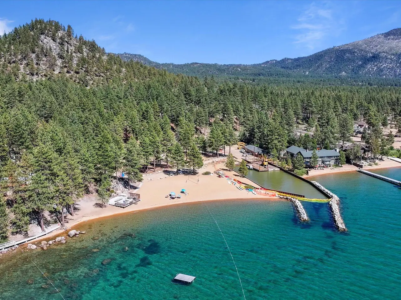 Fully renovated 1929 historic Tahoe log/granite cabin with detached guest cottage within private, gated Elk Point Country Club. A rare find. Renovation includes the installation of DaVinci roofs, new plumbing, electrical, furnace, windows, flooring, exterior fascia, deck, water and sewer lines. Private 13-acre beach, deck, boat storage, & marina. Additional banked TRPA coverage. 92 homes in this historic enclave. Full Nevada tax benefits.