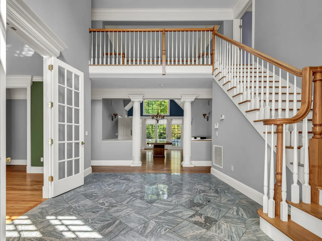 Priced to sell! Custom-built Colonial offers over 7500 sq.ft. of meticulously maintained and updated living space. Once you enter the home you are welcomed by a two story grand foyer and impressive dining room with dramatic ceilings as well as a formal living room with 8 foot french doors. The open concept kitchen/Family Room with fireplace and 2 story ceiling create a large unified space ideal for entertaining. The stunning primary suite located on the main level features a fireplace, sitting room and a huge spa-like bathroom with oversized shower, jetted tub, double sinks and dual closets. Upstairs you will find 3 spacious bedrooms, 2 full baths, a versatile bonus room and walk up attic, ideal for storage or expansion possibilities. The bonus room offers flexible space which can be used as a home office, game room or gym. There is more space in the fully finished walk-out lower level, with plenty of room for a playroom, game room, craft space, bar or home theater. Elegant circular driveway, spacious 3 car attached garage, cul de sac location and so much more. Ideally located in the quintessential New England town, with highly rated schools, an easy commute, plus close to dining, shopping, movies, theater and Ridgefield's desirable Main Street.