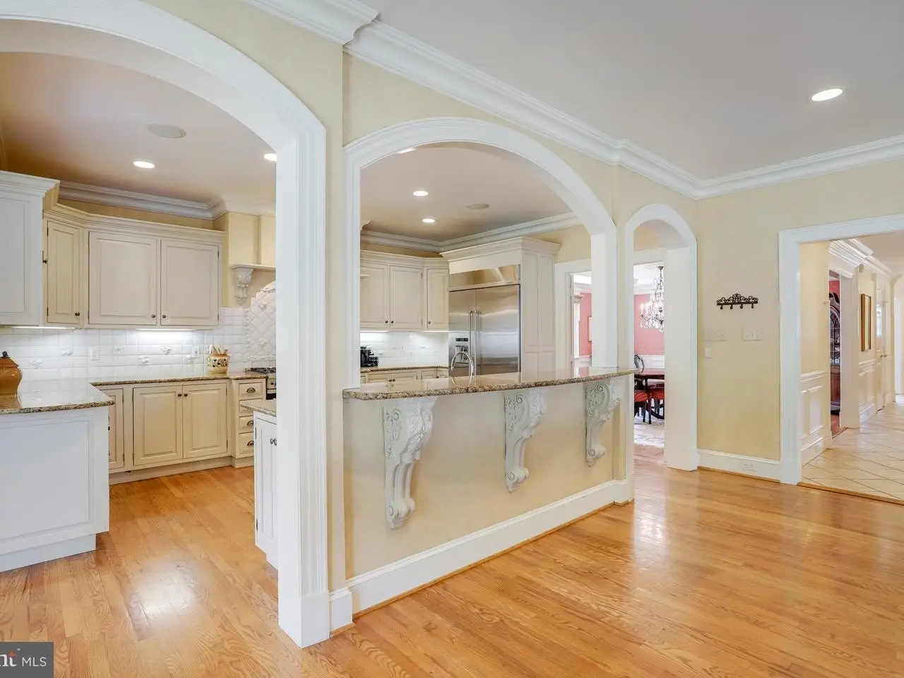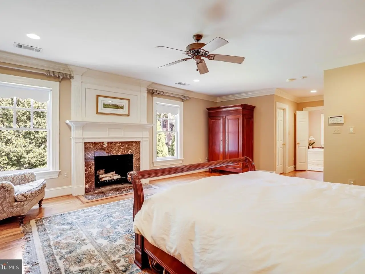 Stunning Colonial on a quiet and peaceful tree lined street in the heart of the Springfield subdivision. Springfield is a friendly neighborhood with well manicured lawns and a strong sense of community.  It sits in the sweet spot of commutes to downtown Washington DC and work points in Virginia and Maryland off nearby 495 and 270. The Ride on Bus and Metro bus are a short walk away and the metro is about 2 miles. This beautiful home was built by Meade Bell and reimagined and expanded by his son, the renowned Frank Bell. With it's classically executed exterior and charm infused interior, it offers nearly 6000 square feet of space. Upon entering the large foyer, you will notice beautiful millwork throughout. The main level features a sprawling open kitchen/family room/breakfast room with nine foot ceilings and a fireplace. French doors take you from this space to a large flat fully fenced grassy yard with flagstone patio and a covered eating portico. Also on this level is a grand entertaining sized dining room and an elegant living room with fireplace. On the upper level, there are 5 bedrooms, 3 full baths and a laundry room, accessed by wide and gracious halls. In the Primary bedroom there is a third fireplace and a spa like bath with a soaking tub, separate shower and double vanity. The lower level has three very large rooms - a home office, a game room and a recreation or media room, as well as ample storage in a separate storage room and utility room. Other amenities include a garage, a new roof, a multi zoned HVAC, and built-in speakers in the ceilings of the kitchen/family room, dining room, and primary bedroom. This property is served by the highly rated school district of Woodacres/Pyle/Whitman. Both the Woodacres Elementary school and playground, and the Little Flower School are a very short walk away. You can also walk to Whole Foods, Kenwood CC and the new Westbard square with its restaurants and shops. This is a rare find in an amazing location!
