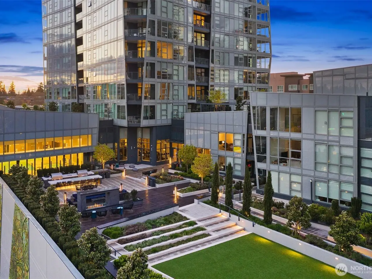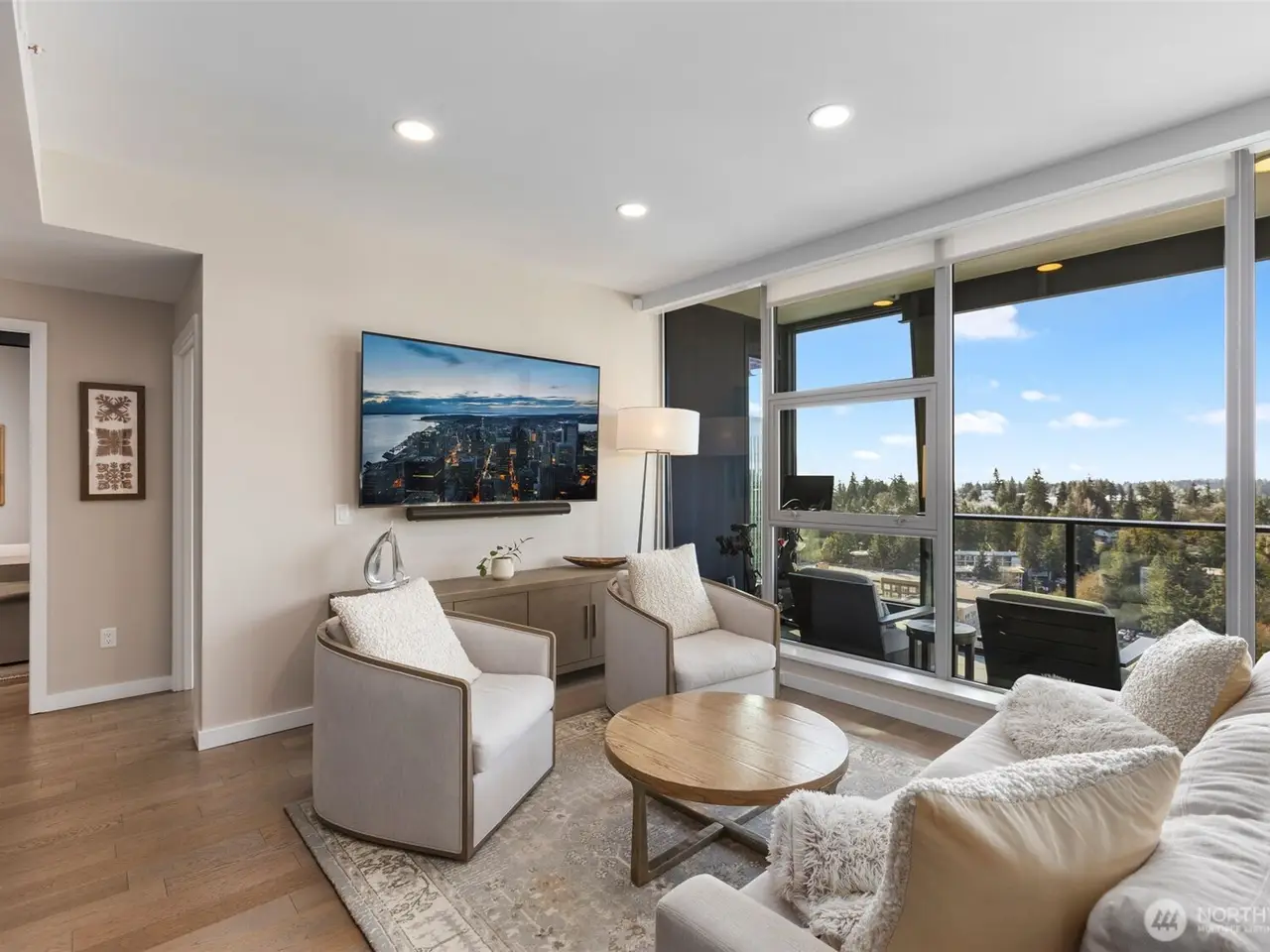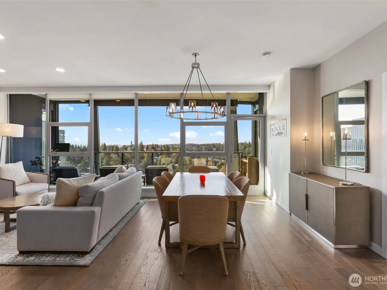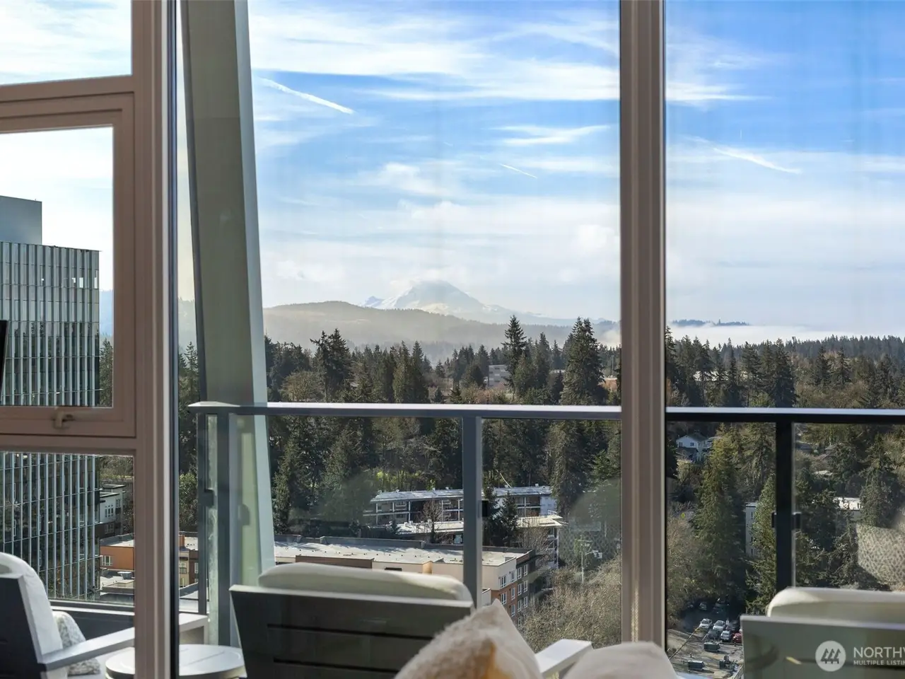 Experience refined luxury in this south-facing residence at One88 by Bosa. Framed by stunning views of Mt. Rainier, Lake Washington, and Bellevue's skyline, this 2-bed/2-bath + den home exudes sophistication with 9-ft ceilings, floor-to-ceiling windows, and wide-plank hardwoods. The gourmet kitchen showcases sleek European cabinetry, Caesarstone quartz counters, and premium Gaggenau appliances. Enjoy a covered balcony, two secure parking spaces, and private storage near the garage. Resort-style amenities include a concierge, indoor pool, sauna, steam room, fitness center, golf simulator, and more--all in the heart of downtown Bellevue's premier shopping, dining, and entertainment. No rental cap!
