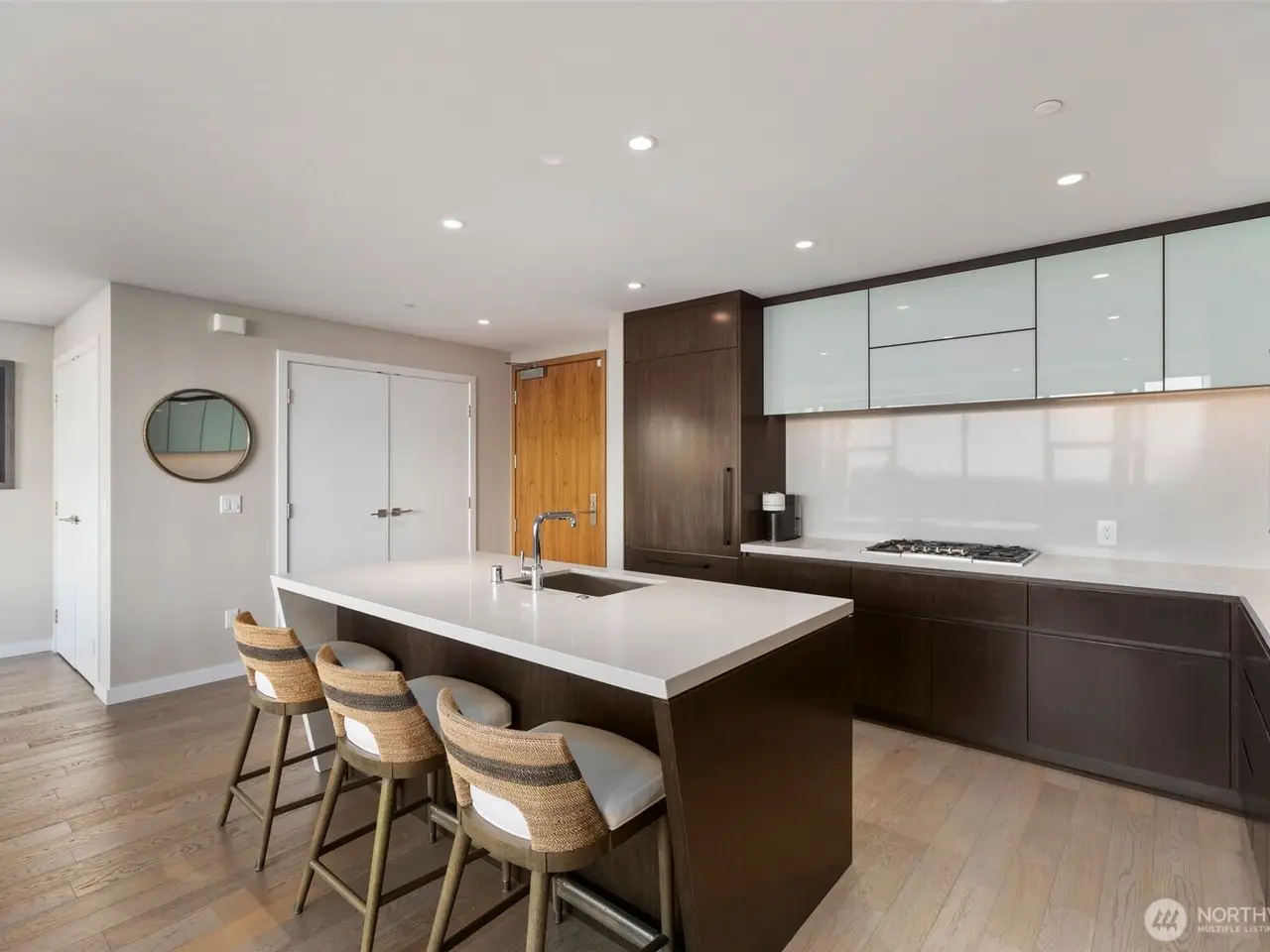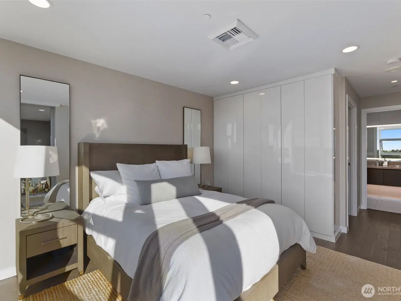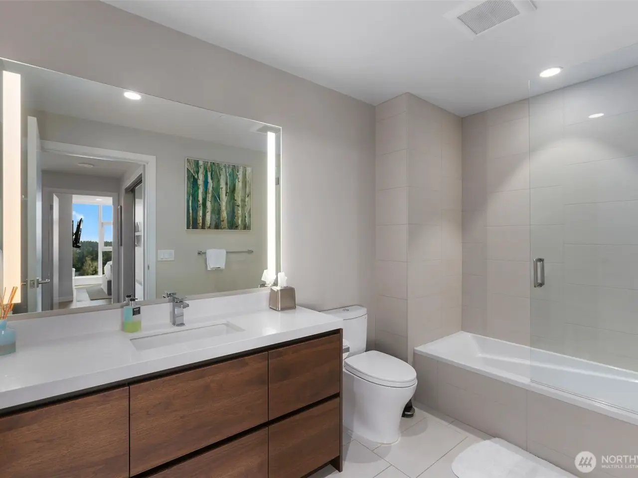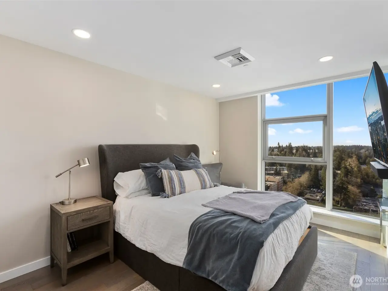 Experience refined luxury in this south-facing residence at One88 by Bosa. Framed by stunning views of Mt. Rainier, Lake Washington, and Bellevue's skyline, this 2-bed/2-bath + den home exudes sophistication with 9-ft ceilings, floor-to-ceiling windows, and wide-plank hardwoods. The gourmet kitchen showcases sleek European cabinetry, Caesarstone quartz counters, and premium Gaggenau appliances. Enjoy a covered balcony, two secure parking spaces, and private storage near the garage. Resort-style amenities include a concierge, indoor pool, sauna, steam room, fitness center, golf simulator, and more--all in the heart of downtown Bellevue's premier shopping, dining, and entertainment. No rental cap!