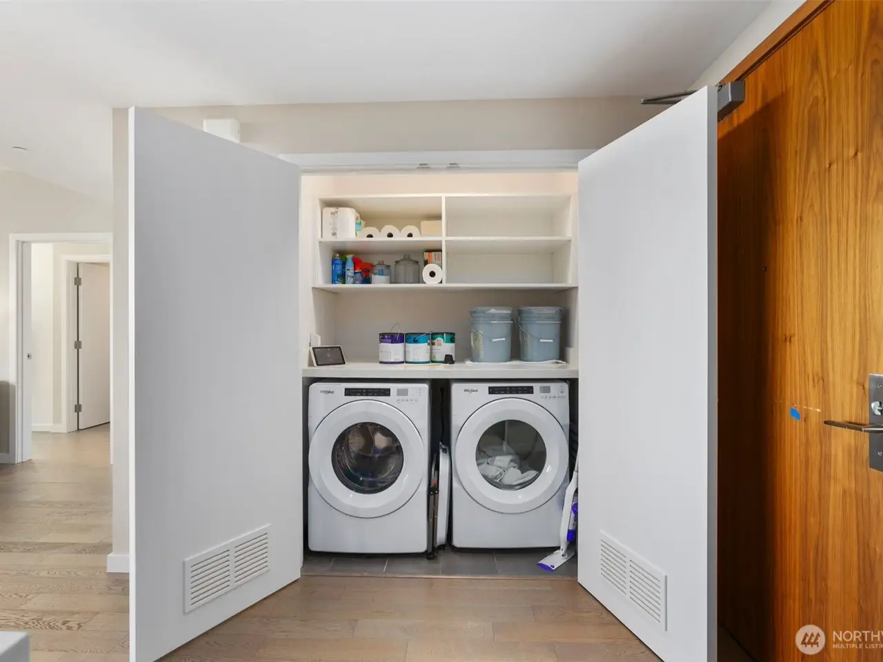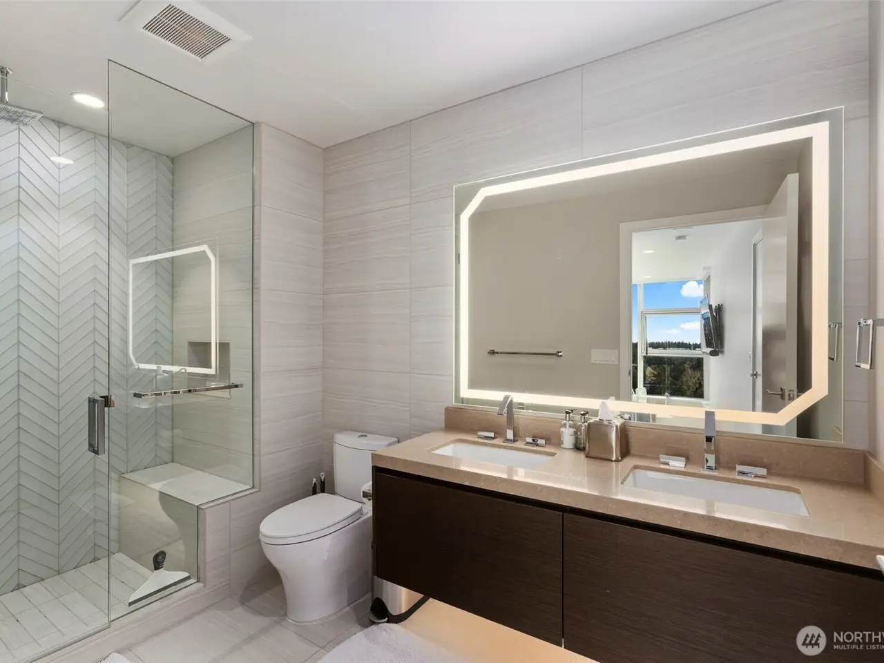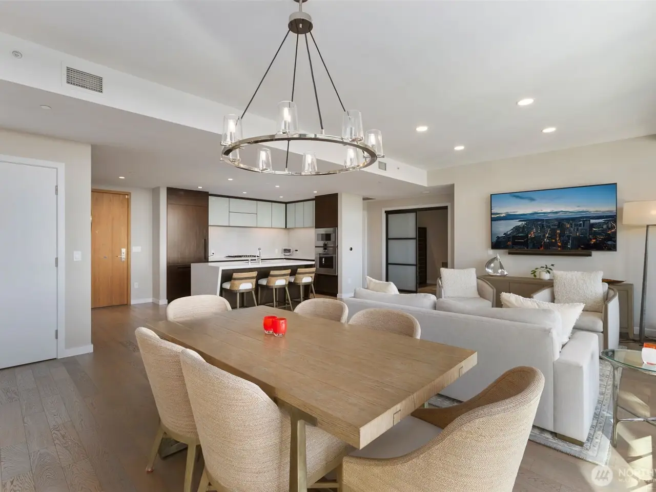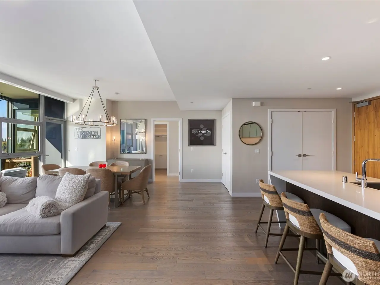 Experience refined luxury in this south-facing residence at One88 by Bosa. Framed by stunning views of Mt. Rainier, Lake Washington, and Bellevue's skyline, this 2-bed/2-bath + den home exudes sophistication with 9-ft ceilings, floor-to-ceiling windows, and wide-plank hardwoods. The gourmet kitchen showcases sleek European cabinetry, Caesarstone quartz counters, and premium Gaggenau appliances. Enjoy a covered balcony, two secure parking spaces, and private storage near the garage. Resort-style amenities include a concierge, indoor pool, sauna, steam room, fitness center, golf simulator, and more--all in the heart of downtown Bellevue's premier shopping, dining, and entertainment. No rental cap!