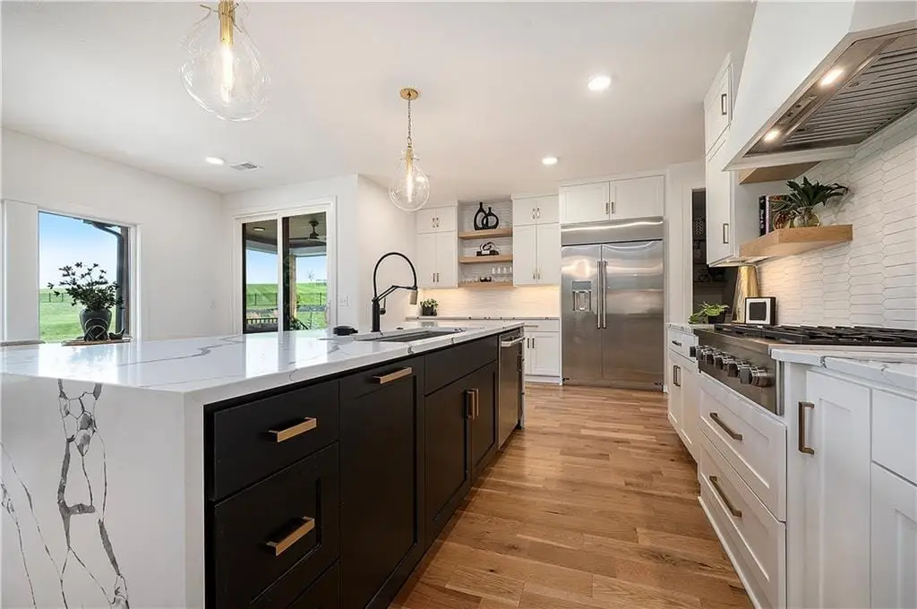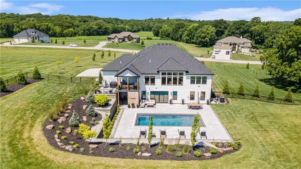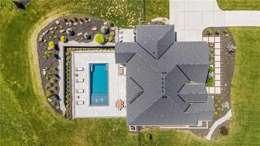 Welcome to this stunning custom reverse 1.5-story home, set on a beautifully manicured 3.62-acre lot. From the moment you arrive, youll notice the meticulous landscaping, treed-lined driveway, and custom stone path leading to the striking 10' double entry doors. The side-entry 3-car garage features epoxy flooring and adds to the homes clean, modern appeal. Inside, 10 ceilings and hardwood floors run throughout the main level. The east wing of the home was expanded to accommodate spacious bedrooms and an impressive primary walk-in closet. The primary boasts a tray ceiling with ceiling fan, the luxurious ensuite includes a freestanding tub, double vanity, and a walk-in shower. The open-concept living room features a handcrafted ceiling design and a Roman Clay gas fireplace. Black Pella windows provide picturesque views of the backyard and pool, while flooding the living area and kitchen with natural light. No detail was spared in the designer kitchen, complete with a waterfall-edge quartz island, custom cabinetry, tile backsplash wall, wrapped hood vent, floating shelves, and 6-burner gas stove. A coffee bar, butler's pantry and walk-in pantry add functionality. Downstairs offers an expansive open layout with 10 ceilings, luxury vinyl plank flooring, full bath, full bar and half bath. The show-stopping basement bar features an oversized black quartz island, sink, custom cabinetry, tile feature wall, and floating shelves. Two additional bedrooms and a third full bathroom complete the lower level. The storage room has been converted into a home gym and includes John Deere doors that open to pool deck. Outdoors, enjoy a private oasis with a beautifully landscaped Pinnacle fiberglass 35' in-ground pool, with retractable cover, retaining wall, ambient lighting, and tree-lined east boundary. Convenient pool storage is tucked beneath the deck. This home offers luxury, privacy, and custom craftsmanship at every turn.