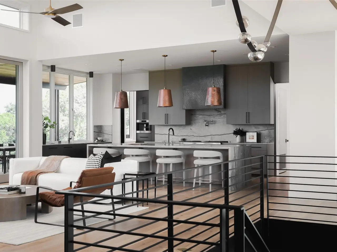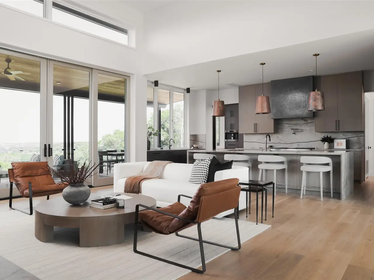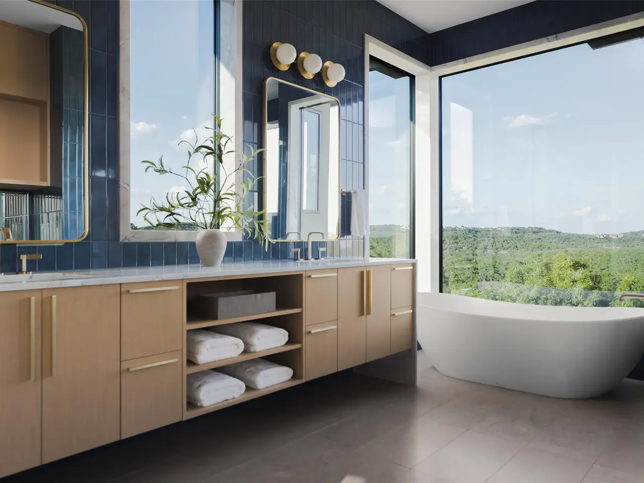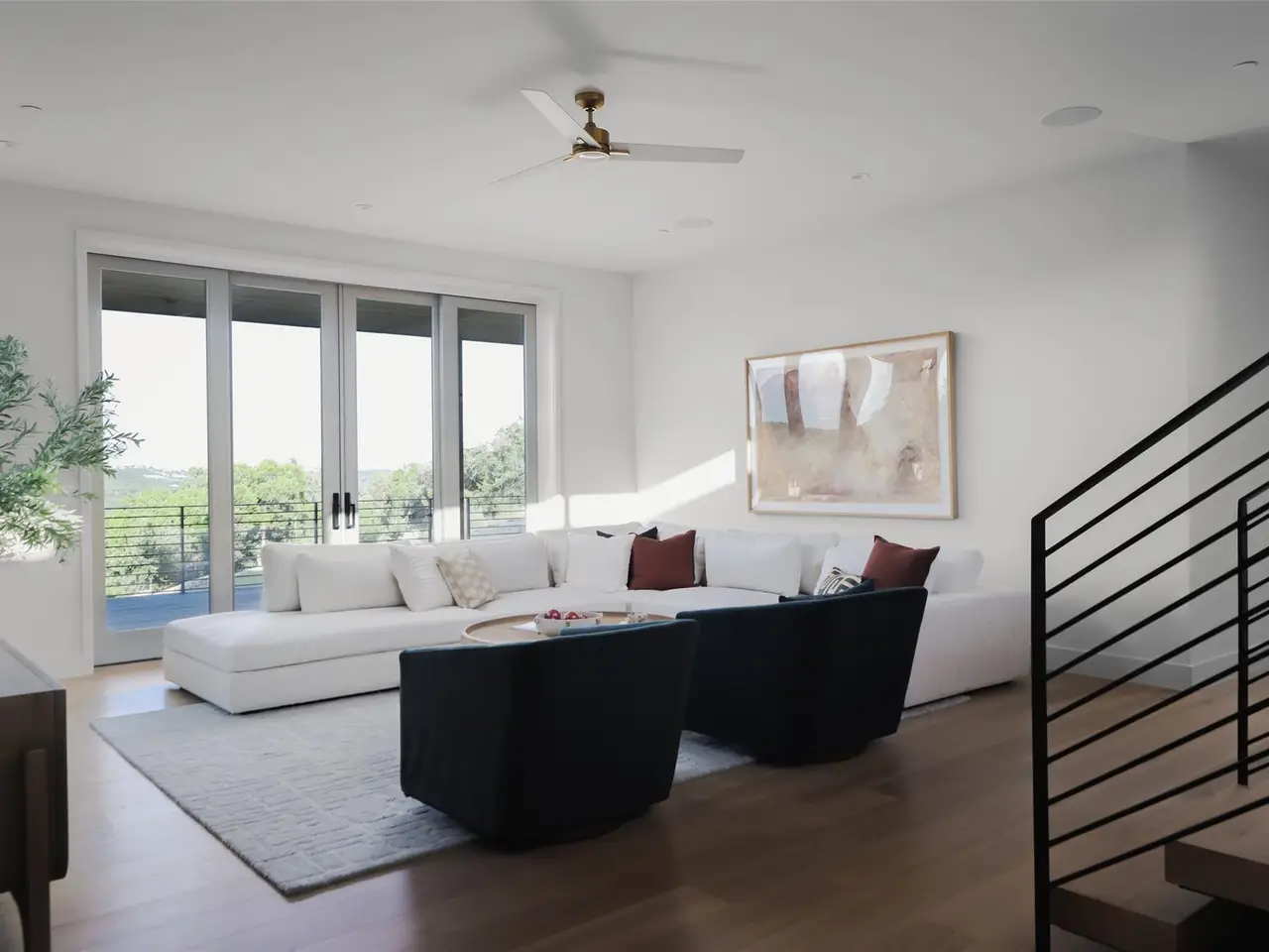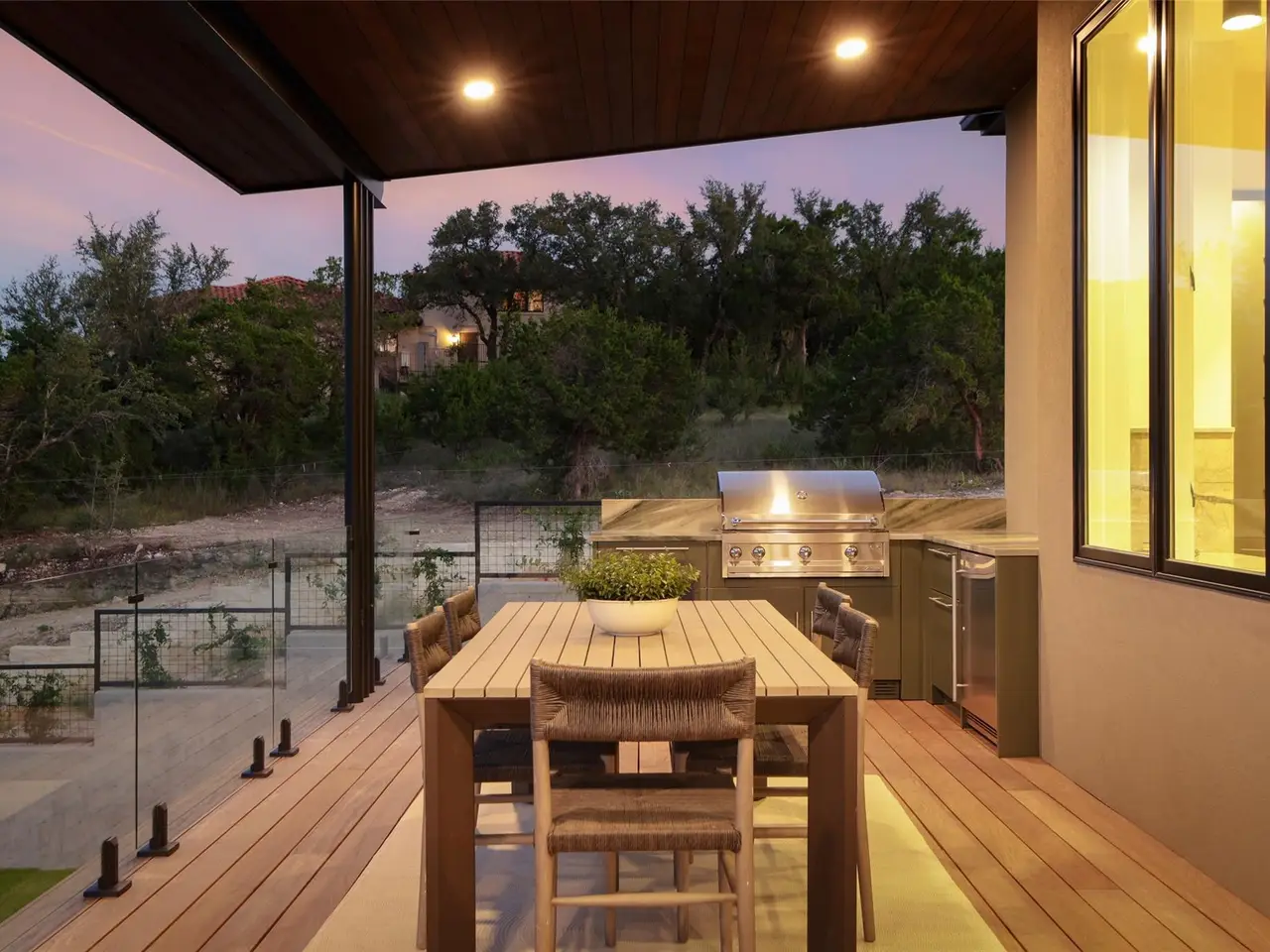 Perched in a tranquil Hill Country setting with sweeping views of the iconic 360 Bridge, 4315 City Park Road is a striking newly completed residence by Next Custom Homes, in partnership with A New Hope Home Builders. Offering 8.1 acres and +/- 5,500 square feet of thoughtfully designed living space, this home is an architectural blend of elegance and functionality, with seamless indoor-outdoor living. Expansive windows frame the natural vistas from nearly every room, while multiple living spaces create flexibility for entertaining, relaxation, and family life. The home features five bedrooms, a study, and a media room. The fifth bedroom can also serve as an at-home gym and is equipped with a sauna, steam shower, and dedicated power for a cold plunge. The chef's kitchen is a showpiece, outfitted with built-in Wolf appliances including a steam oven, wall oven, and coffee system, as well as two dishwashers, a Sub-Zero refrigerator, wine storage, and a freezer with ice maker. The primary suite offers exceptional convenience with a stackable washer/dryer in the closet, complementing the home's main laundry room. Expansive outdoor living is a hallmark of the property, with 1,697 square feet of decking that captures the breathtaking panoramas. The infinity pool and jacuzzi, with WiFi-enabled controls, offer an unparalleled setting to unwind while watching the sun set over Austin's hilltops. A fully equipped kitchenette, outdoor grill, and three-car garage further enhance the home's livability. Every detail--from the outdoor entertaining spaces to the media room and wellness amenities--has been curated for a lifestyle that is both elevated and deeply connected to its serene surroundings. Tax and assessed values are estimates for illustration purposes only. Square footage is per builder plans and any interested party should confirm and not exclusively rely on the information contained herein. All figures should be independently verified.