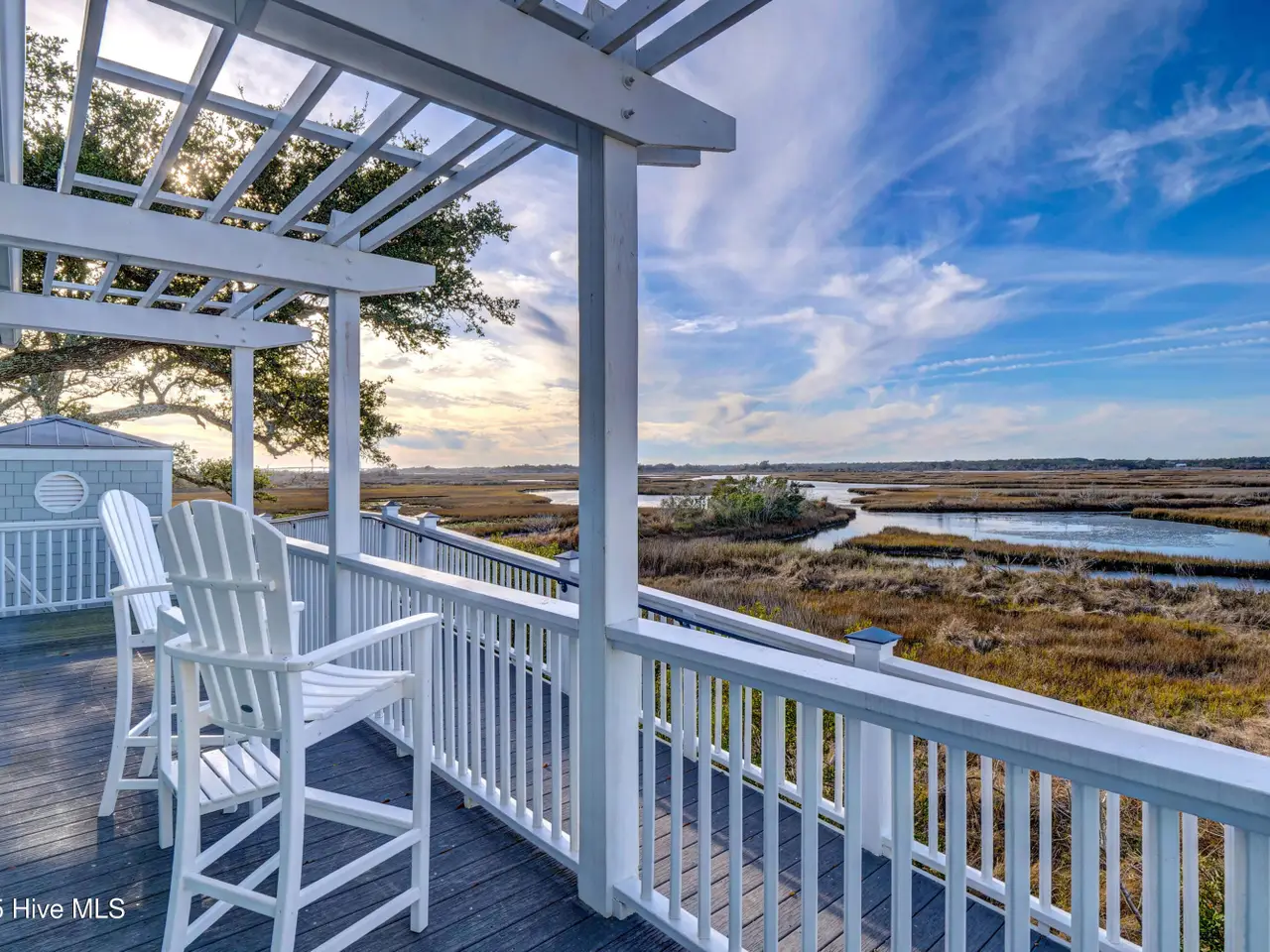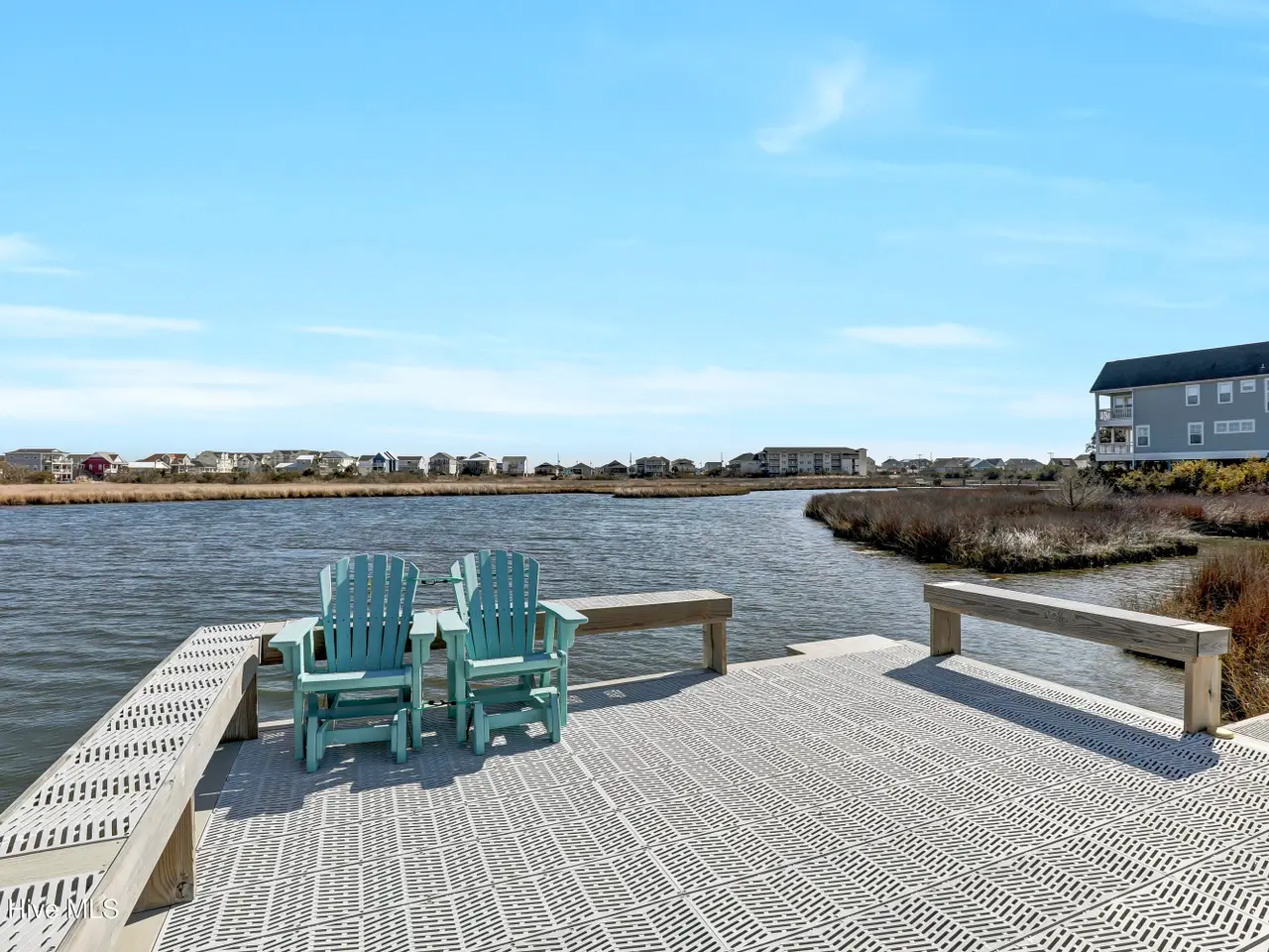 Stunning 4-bedroom, 4-bathroom Sound side waterfront townhome with 2,656 square feet of open living space. Standout features of this home are the incredible views from multiple decks and every room throughout the home, along with the expansive private dock with a spacious sun deck ideal for enjoying sunsets & hosting gatherings by the water. Inside, you'll find luxurious details such as custom living area built-in cabinetry installed in March 2025, 9-ft ceilings, wood flooring, a gas fireplace, and large windows that enhance the natural light. The gourmet kitchen area features granite countertops & bar with seating, stainless steel appliances, and a pantry. The living room and dining room are blended into one, and a large table makes it the perfect place to host. The primary suite is a true sanctuary, with amazing water views from inside & the private balcony. With a walk-in closet and an updated bath complete with a stand-alone tub, tiled shower, and dual vanity, this room is truly exquisite. The additional two upstairs bedrooms include an en-suite bathroom, and the first-floor bedroom/office offers additional versatility.Designed with coastal living in mind, there are new custom hurricane shutters providing peace of mind and protection throughout the year. The home also includes an outdoor shower, and access to a community pool/clubhouse with more fantastic marsh and water views. Located in a cul-de-sac setting, the property is close to public beach accesses, local dining, and shopping, which offers both privacy and convenience. Sold furnished with some exceptions. No short-term rentals allowed.
