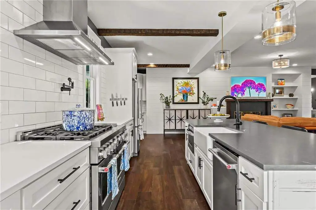 Welcome to 53 Maple Street, a bright, sophisticated, and magazine-worthy residence in the heart of Roswell's Historic Mill District. This custom home blends timeless design with smart upgrades and unmatched walkability to Canton Street, Roswell Square, Vickery Creek trails, and the Chattahoochee National Park. Situated on a beautifully landscaped corner lot, the home offers multiple outdoor living spaces, including a front porch with a charming swing bed, a private courtyard with a water feature, upgraded turf, stone pavers, and landscape lighting on WiFi timers. The interior is equally stunning, filled with natural light and styled with designer lighting, hardwood and tile flooring throughout, wood-beamed ceilings, shiplap accents, and casement windows. The chefs' kitchen features Silestone quartz and charcoal soapstone countertops, a large island with farmhouse sink, 48 KitchenAid Pro gas range with griddle, vented hood, built-in refrigerator and dishwasher, custom pull-out pantry shelving, and utility storage under the stairs. The main-level primary suite offers courtyard access and a spa-style bath with a freestanding tub, frameless glass shower with four heads, quartz-topped vanities and premium fixtures. Upstairs, you'll find four generously sized bedrooms, including a well-appointed en suite-each enhanced with designer lighting and custom Bali window treatments. A versatile loft retreat just off the secondary bedrooms provides the perfect space for guests or family to relax, unwind, and feel right at home.The oversized two-car garage features epoxy floors, a built-in wash sink, adjustable shelving, Tesla/NAC charger, and WiFi-enabled garage doors. Smart home features include Google Nest and Camius motion-detecting cameras, WiFi-enabled lighting and shades, keypad entries, tankless water heater scheduling, and spray foam insulation over the garage. Every detail in this home has been thoughtfully curated to inspire-from everyday functionality to swoon-worthy design moments-making it one of Historic Roswell's most elegant and turnkey opportunities.