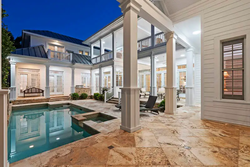 Discover an extraordinary opportunity, a Grand Family Retreat in the Heart of Naples with an unmatched location and irreplaceable corner, oversized lot! Seamlessly blending elegance with the comfort of modern living, this five bedroom plus den residence is a warm and welcoming haven, that exudes both timeless charm and contemporary luxury. From the moment you step into the impressive foyer, you'll sense the home's inviting spirit. Rich wood flooring, a coastal fireplace, and bright natural lighting all set the tone for refined yet relaxed living, perfect for both quiet family evenings and lively gatherings with friends. At the heart of the home lies an elegant family room and kitchen with its vaulted ceiling, abundance of cabinetry and integrated appliances with gas range, making family breakfasts or weekend entertaining a delight. This airy oasis invites you to linger over meals while enjoying soothing views of the private outdoor swimming pool surrounded by lush greenery. Meticulously maintained throughout, and a brand-new roof, skylights and gutters installed as of the end of 2024 as well as freshly painted. Whether you are looking to relax, work, study or more, a comfortable study/TV room offers a peaceful retreat, ideal for balancing productivity and relaxation. Additional amenities like the front porch to watch the sunsets elevate everyday living and roof top to watch the world go by. Ground floor primary suite features a fully fitted dressing room and large ensuite bathroom, a soothing sanctuary at day's end. A further generous first floor guest suite overlooks an enchanting garden courtyard. Venture upstairs to discover three further double bedrooms, all with ensuite bathrooms and balconies. This remarkable home, steps from the beach and a short walk to Third Street Shops and Dining is an invitation to create cherished memories in a setting that embodies Naples most appealing qualities: heritage, community, and effortless access to both the Gulf Coast and the city. Embrace a lifestyle that celebrates the best of Naples charm and urban sophistication-all in one exceptional family residence.