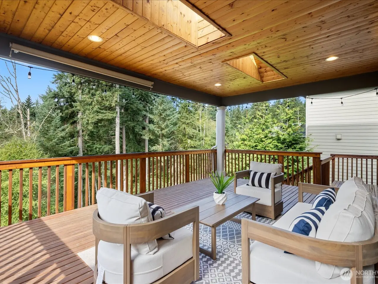 Experience the best of Pacific Northwest living in this stunning home backing to Meadowdale Beach Park. Surrounded by lush greenery, the oversized covered deck with skylights invites year-round relaxation and entertaining. Inside, hardwood floors flow through an open, light-filled layout featuring a spacious great room with a cozy gas fireplace and a chef's kitchen with premium appliances, butler's pantry, and granite counters. Retreat to the private primary suite with serene forest views, sitting area, walk-in closet, and spa-like bath. A newer heat pump ensures comfort in every season. Enormous basement storage. Just steps from scenic trails to the beach with breathtaking Sound views--this is a rare opportunity you won't want to miss!