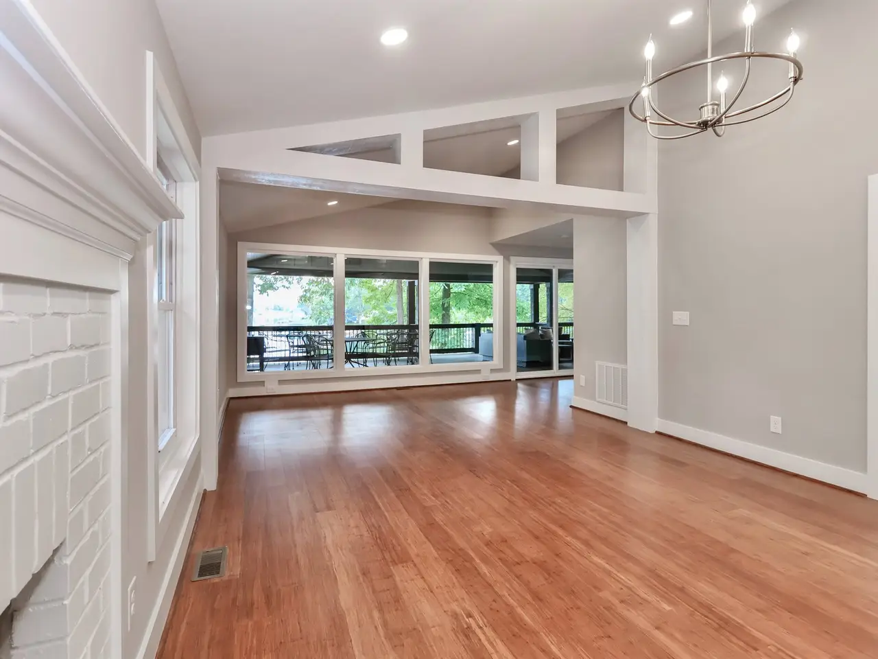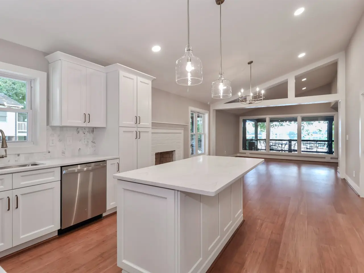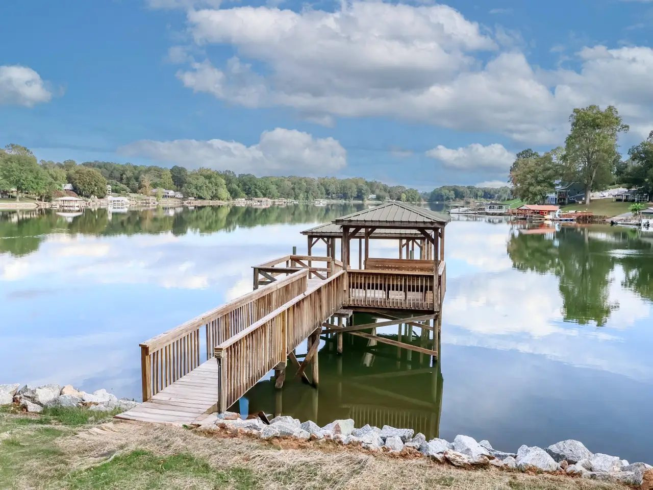 This 1964 lake house has been completely transformed and now looks like 2025 new construction. Every surface has been updated, and you will not be disappointed. Gutted to the studs with new plumbing and electrical throughout, this home features a fabulous new kitchen with modern appliances, a living room with fireplace, and an amazing 675 square foot covered deck with a fireplace and million-dollar lake views. The main level offers two bedrooms and one full bath, along with a half bath. The walkout basement includes a family room with working fireplace, sink, and refrigerator, plus two additional rooms that can serve as a bunk room and flex space, along with a full bath. The septic system was installed in 2015 and is rated for two bedrooms, but the home provides plenty of space to spread out with family and guests. Additional updates include an electric water heater (2025), furnace and central air (2015), roof (2015), and two thermostats for upstairs and downstairs. The dock has new electrical and a fan, and the garage with a new door offers lake views and works well for storage or a workshop, but is not suitable for vehicles or boats. Exterior updates include a new seawall, new driveway and parking areas, fresh landscaping, and new steps leading to the dock. Mountain Creek Park is located within one mile of the property.