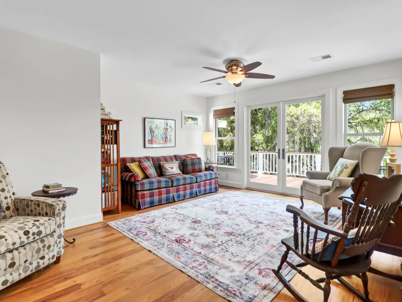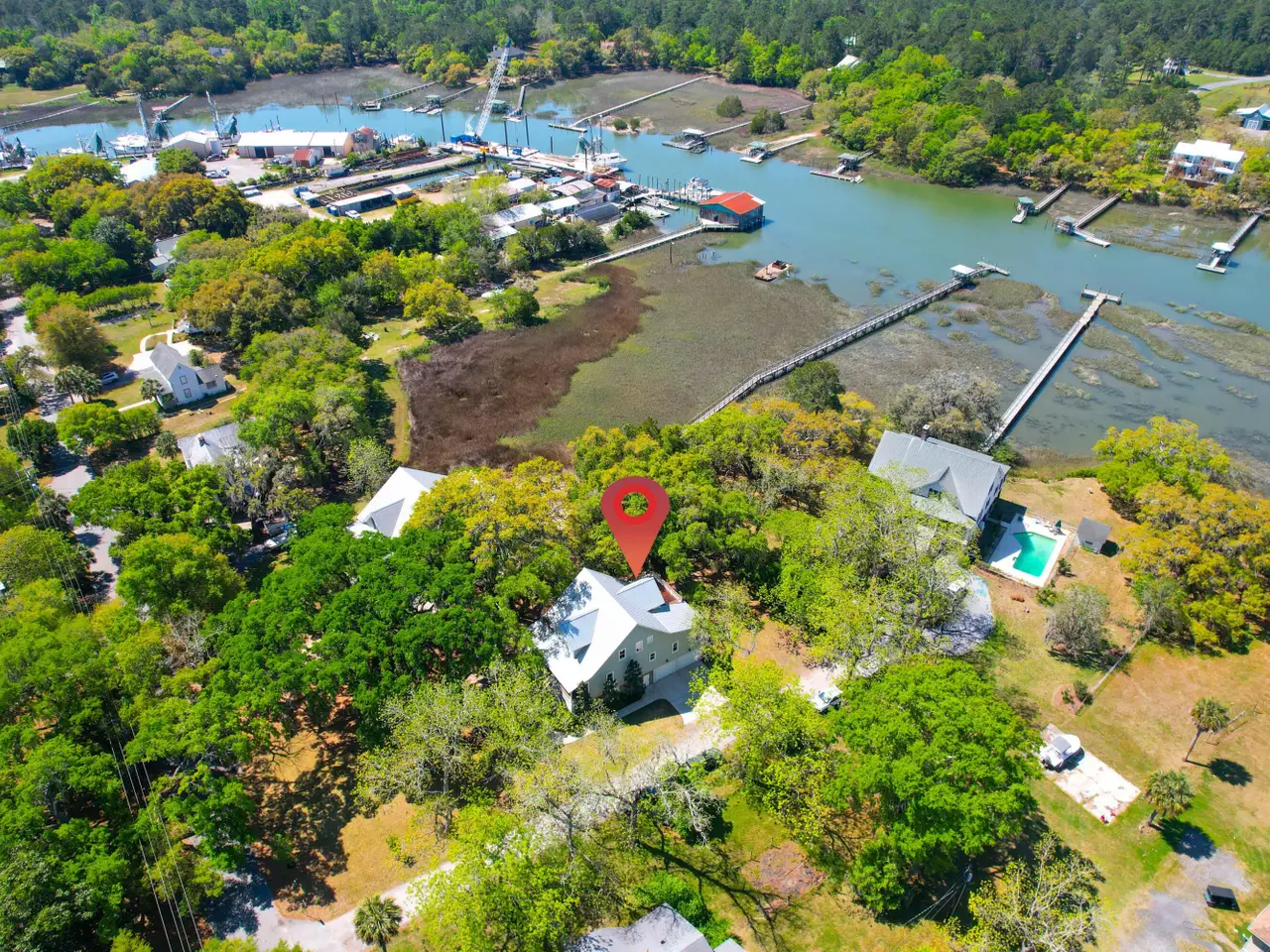 Deep into the cozy tidal village of McClellanville, you'll find this beautiful custom home tucked into a grove of Oaks. Surrounded by the comfort of the Oaks, every room offers a beautiful view of nature. This is true lowcountry living. This awesome home is elevated and sits on .90 of an acre giving you plenty of yard to enjoy and providing great privacy. A large front porch opens into a wide foyer that leads you into this lovely light-filled home! Beautiful hardwoods run throughout and add to the warmth. Its open floor plan offers areas for dining and gathering around in front of the fireplace for TV or games. Complete with built-ins with shelving for your books and display items. An extra-large kitchen is tucked into the front corner overlooking the dining/living and it has its own breakfast nook. All the cabinet space you could want is found in this kitchen!! New appliances make it even better! A spacious guest room with bath, a laundry room and the large primary suite with access to the back screened porch complete the downstairs. Except of course, for the elevator, as the home features an elevator from the ground level to the first floor. Upstairs, two very spacious bedrooms share a loft den with access to a deck overlooking the beautiful yard and trees. A front bedroom and a full bath are just off the den while across the hall, the bedroom is en-suite. At the end of the hall is an office/ flex room. Great closets and storage throughout as well as underneath the home. Outside offers many spaces to enjoy nature. A side porch tucked off the garage, an extra-large yard hosting some of the most gorgeous grand oaks in the Village, and then out back to your own short private walkway which leads you to the shared dock. At the end of the dock is a gazebo with a swing for relaxing and enjoying the creek. From your dock on Jeremy Creek, you can get to the Cape Romaine National Refuge and Intracoastal Waterway. That's great water and the large floating dock sits a wide section of the creek. The town boat landing is right down the street. Enjoy a stroll to the library just up Baker Street from the house. Walk to the farmers market on Saturdays, and the village shops and several restaurants. Walk down the street and jump on a shrimp boat headed to the Blessing of the Fleet! McClellanville offers a more relaxed lifestyle to those looking. Community and living among nature are a couple of it's big draws. Come check it out.