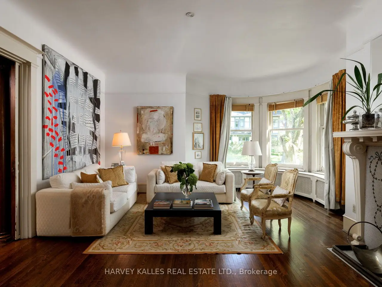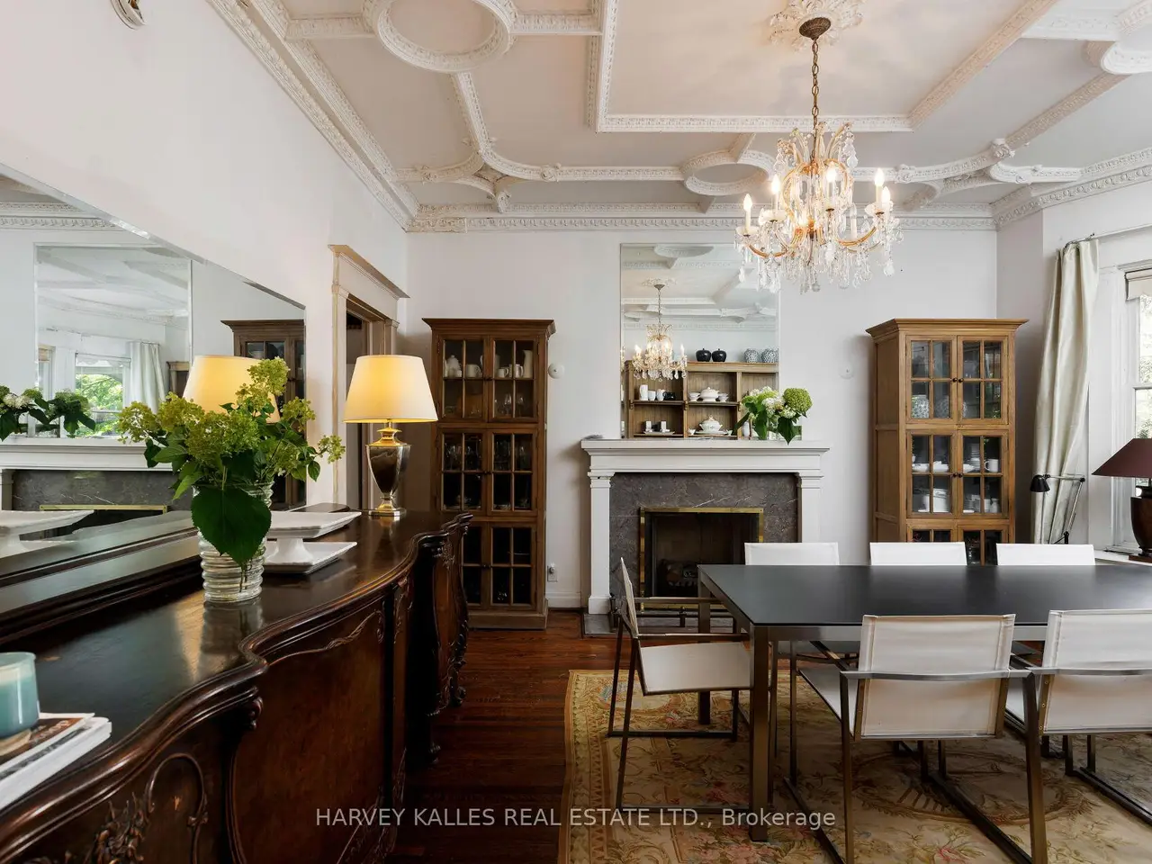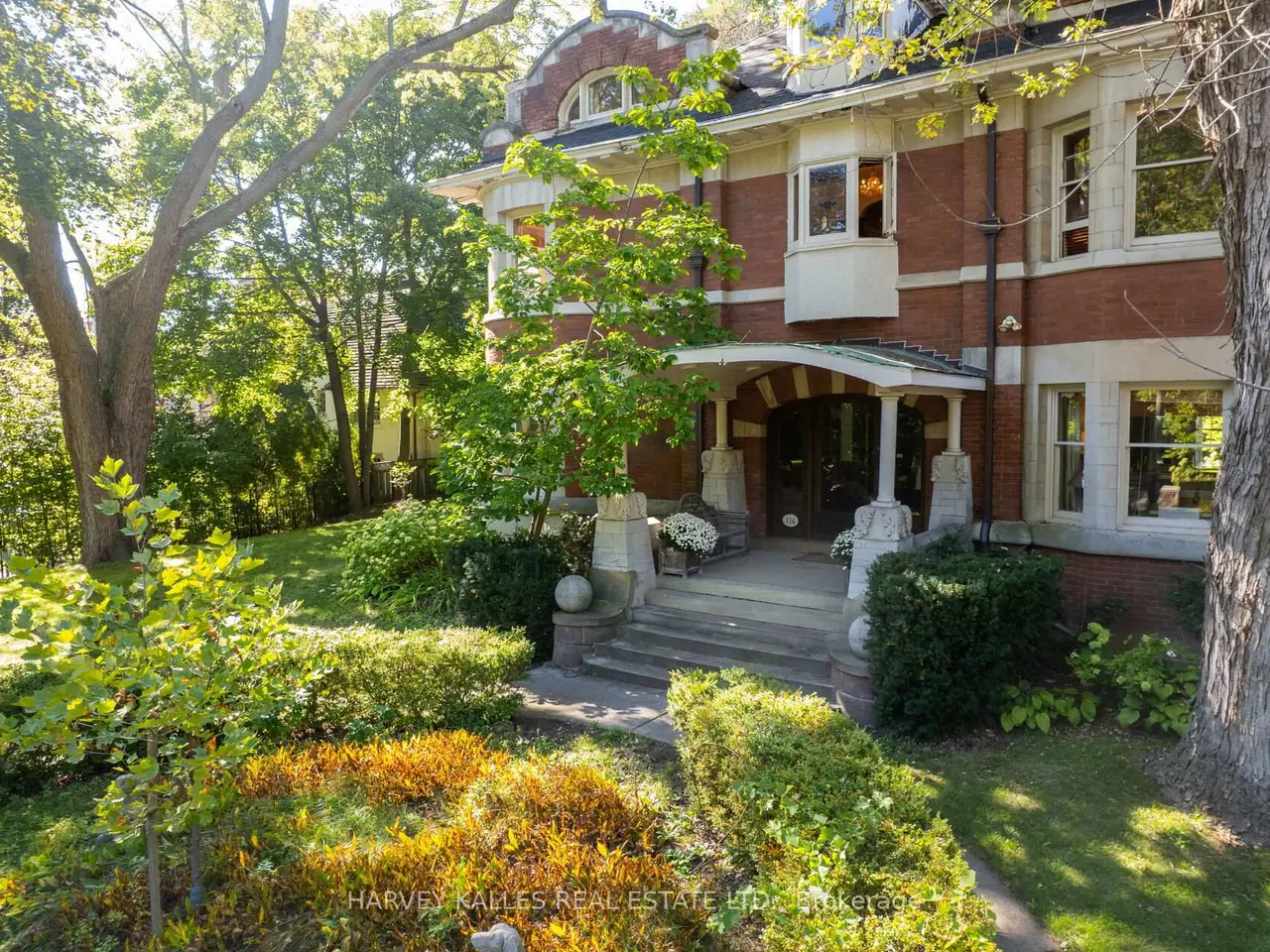Nestled in Toronto's prestigious Rosedale neighbourhood, this landmark mansion occupies an expansive 100' x 122' estate-sized lot and offers over 7,500 square feet of impeccably designed living spaces. With 7 + 1 generously proportioned bedrooms, 8 bathrooms, and an exceptional third-floor loft, this grand residence seamlessly blends historic architecture with the scale, elegance, and functionality. Originally built circa 1900 for the distinguished Applegate family, the home has been meticulously restored and thoughtfully maintained to preserve it's architectural heritage including a selft portrait stain glass window of Mrs. Applegate herself. Drawing inspiration from the classical traditions of Italian Renaissance architect Andrea Palladiio - most notably his iconic Villa Rotunda in Vicenza, Italy - the home reflects timeless design and exceptional craftmanship. A majestic octagonal central hall, framed by twelve lonic columns, creates an unforgettable first impression and sets the tone for the rest of the residence. Throughout the home, rich period details abound: original oak hardwood floors, finely hand-craved oak mouldings and wainscoting, intricate millwork, and 6 fireplaces with decorative tile and brick hearths. The soaring 10-foot ceilings are adorned with ornate plaster crown mouldings, ceiling medallions, and oak-beamed details that speak to the home's historical significance. Expansive bow windows and beautifully preserved stained glass flood the interior with natural light and highlight the warm, elegant atmosphere. Outside, the property is a private oasis, surrounded by mature trees, lush landscaping, and tranquil gardens that offer rare serenity in the heart of the city. A detached two-car garage and additional parking for three vehicles provide added convenience. This is a once-in-a-generation opportunity to own a truly iconic Rosedale residence - an architectural treasure steeped in history and timeless charm.