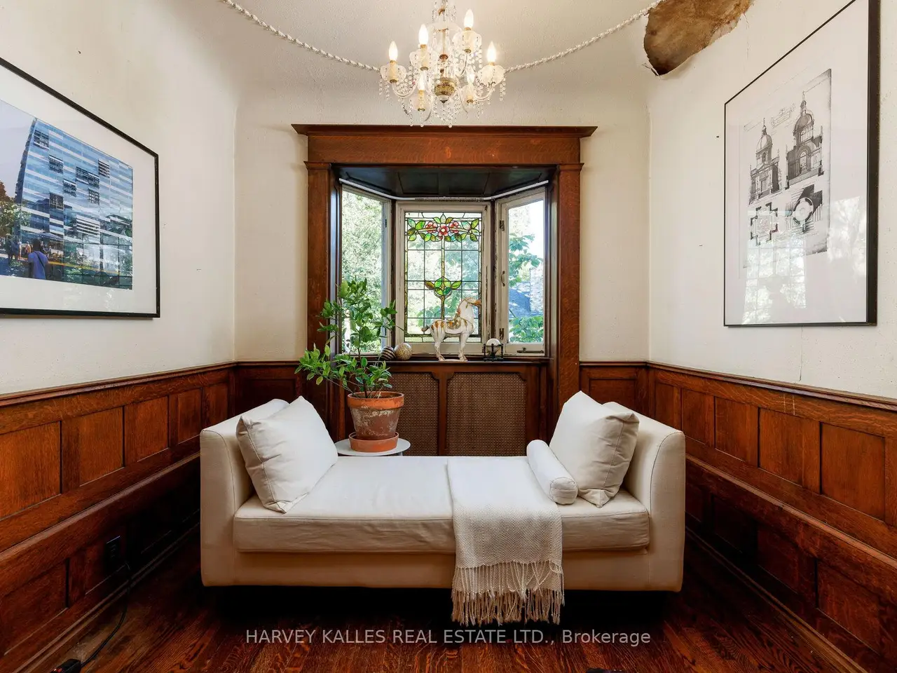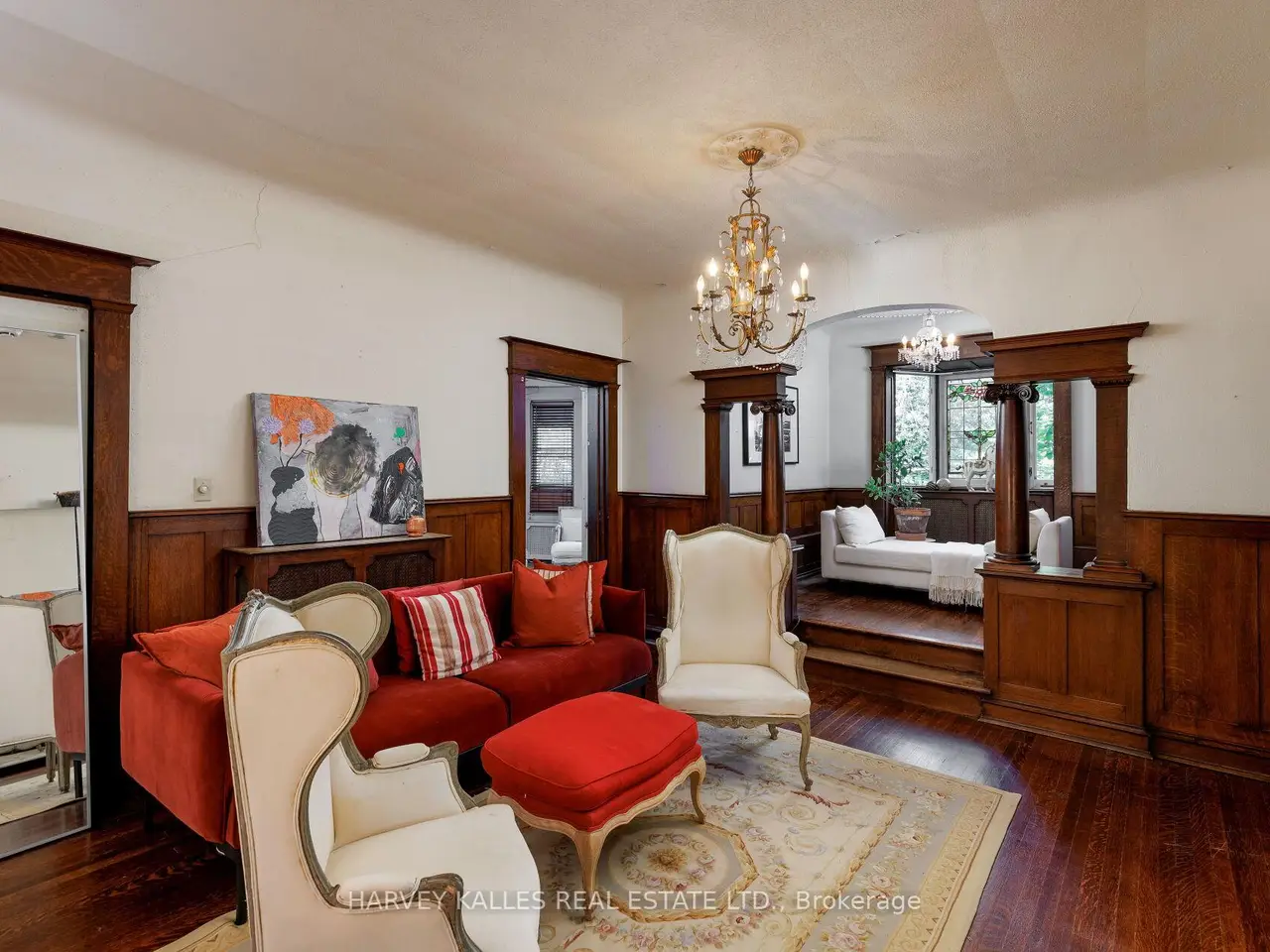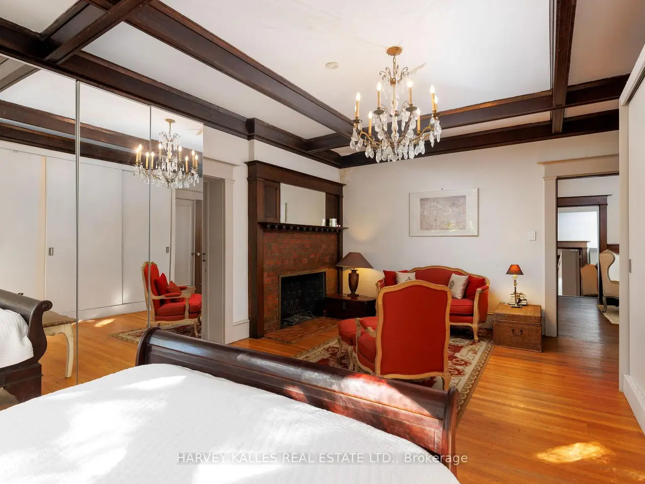 Nestled in Toronto's prestigious Rosedale neighbourhood, this landmark mansion occupies an expansive 100' x 122' estate-sized lot and offers over 7,500 square feet of impeccably designed living spaces. With 7 + 1 generously proportioned bedrooms, 8 bathrooms, and an exceptional third-floor loft, this grand residence seamlessly blends historic architecture with the scale, elegance, and functionality. Originally built circa 1900 for the distinguished Applegate family, the home has been meticulously restored and thoughtfully maintained to preserve it's architectural heritage including a selft portrait stain glass window of Mrs. Applegate herself. Drawing inspiration from the classical traditions of Italian Renaissance architect Andrea Palladiio - most notably his iconic Villa Rotunda in Vicenza, Italy - the home reflects timeless design and exceptional craftmanship. A majestic octagonal central hall, framed by twelve lonic columns, creates an unforgettable first impression and sets the tone for the rest of the residence. Throughout the home, rich period details abound: original oak hardwood floors, finely hand-craved oak mouldings and wainscoting, intricate millwork, and 6 fireplaces with decorative tile and brick hearths. The soaring 10-foot ceilings are adorned with ornate plaster crown mouldings, ceiling medallions, and oak-beamed details that speak to the home's historical significance. Expansive bow windows and beautifully preserved stained glass flood the interior with natural light and highlight the warm, elegant atmosphere. Outside, the property is a private oasis, surrounded by mature trees, lush landscaping, and tranquil gardens that offer rare serenity in the heart of the city. A detached two-car garage and additional parking for three vehicles provide added convenience. This is a once-in-a-generation opportunity to own a truly iconic Rosedale residence - an architectural treasure steeped in history and timeless charm.