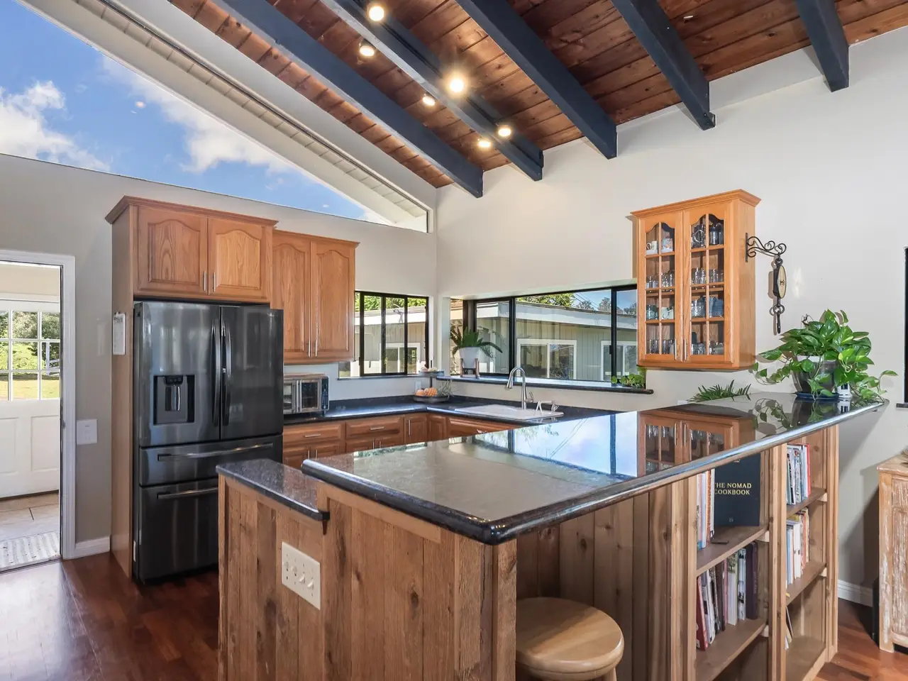 Private Forest Retreat on 2.13 Acres Bordering the majestic Makawao Forest Reserve and set above a peaceful gulch, this exceptional Upcountry estate offers the perfect blend of privacy, flexibility, and natural beauty. Located in the highly desirable Pi?iholo area—known for its crisp air, lush landscape, and serene forest setting—this fully fenced property sits at the end of a quiet cul-de-sac, just 12 minutes from historic Makawao town. The main home spans 3,264 sq ft with 5 BD and 4 full BA, featuring vaulted ceilings, elegant Marbau wood floors, travertine bathrooms, and in-floor central heating—ideal for cooler Upcountry mornings. Designed with openness and warmth in mind, the floor plan lends itself to relaxed living and entertaining. On the opposite end of the property, the detached Ohana offers 1,232 sq ft of comfortable living space with 3 BD, 2 BA, extended lanai space and a sizable 560 sq ft garage —perfect for extended family, long-term rental, or visiting guests. Additional amenities include a one-car garage with a connected exercise room and art studio, and a charming tiny home with a full kitchen and expansive lanai—ideal for a caretaker, guest hideaway, or creative retreat. The gently sloped acreage is dotted with mature fruit trees—including avocado, apple, grapefruit, orange, lemon, and peach—and surrounded by the tranquil sights and sounds of nature. Wake to the chirping of forest birds and savor the peaceful energy of Pi'iholo’s higher elevation. Whether you're looking for a multigenerational compound, income-generating property, or a private sanctuary immersed in nature, this one-of-a-kind retreat delivers Upcountry living at its best.