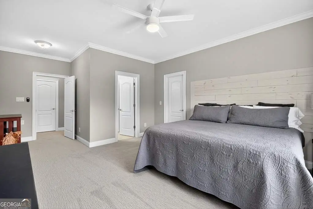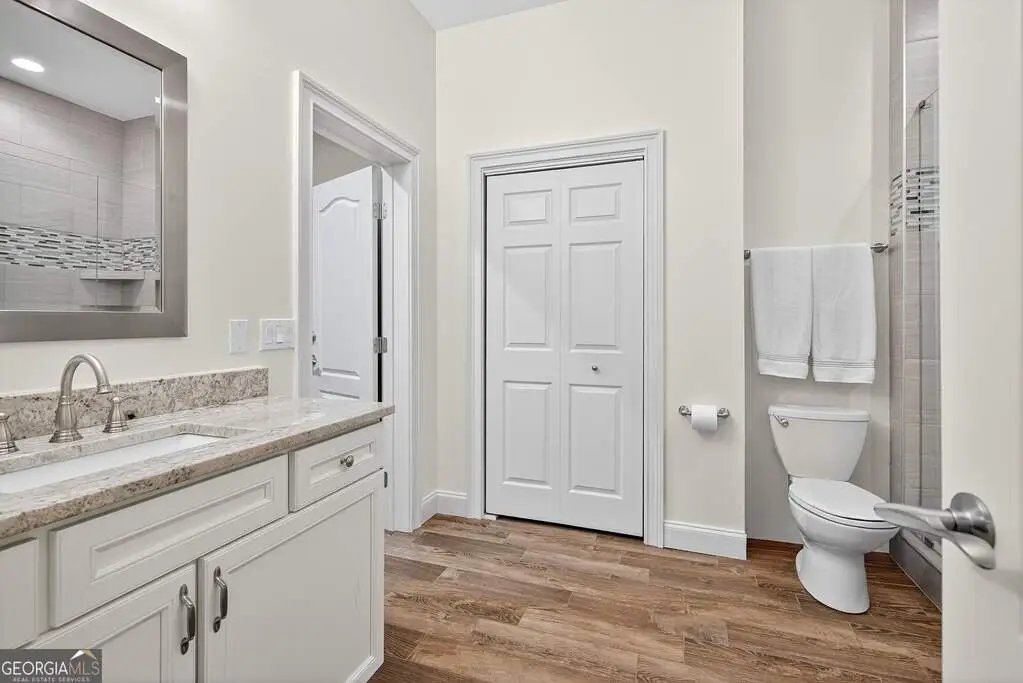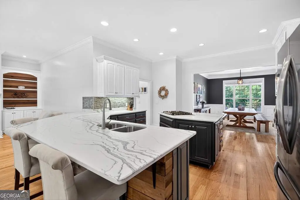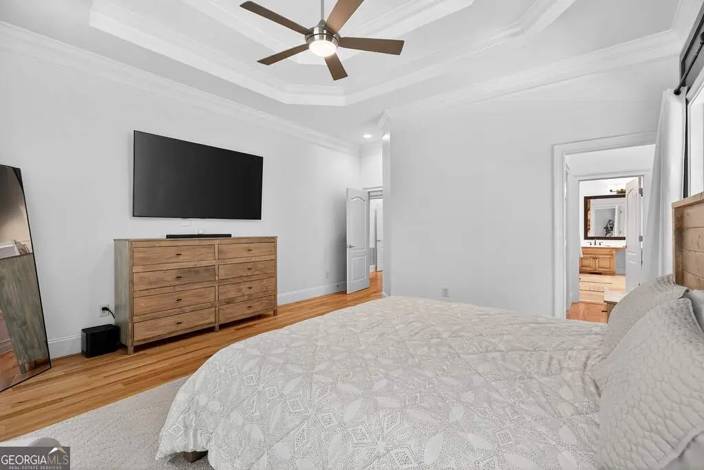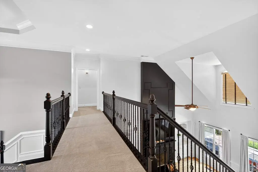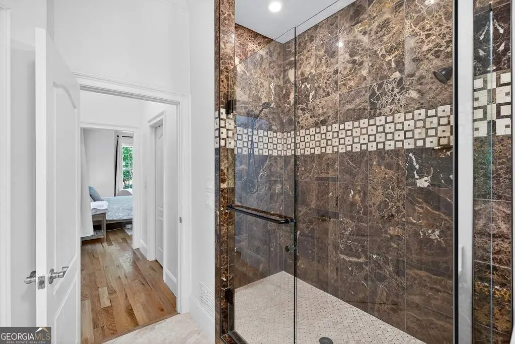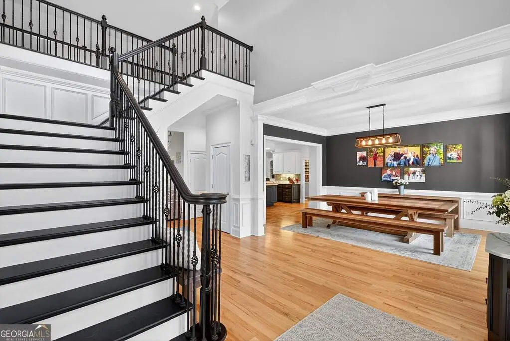 Welcome to 53 Vinings Trace in the highly sought-after Arbor Springs neighborhood. Perfectly located just 20 minutes from Atlanta, 15 minutes from Hartsfield-Jackson International Airport, and only minutes from I-85, this stunning six-bedroom, four full and two half bath home offers the perfect blend of luxury and convenience. The main level opens with a welcoming foyer and leads into a large dining room, ideal for entertaining. The chef's kitchen features quartz countertops, refinished cabinets, a breakfast bar, casual dining area, and a cozy keeping room with a fireplace and built-in bookshelves. The spacious living room boasts a soaring two-story feature wall with a fireplace and custom built-ins, creating a true focal point. The owner's suite on the main level is a private retreat with a recently renovated spa-inspired bathroom featuring a stone resin freestanding tub, oversized tiled shower, and marble counters on the dual vanity and marble flooring. Hardwood floors throughout, an office, large laundry room, and a half bath complete the main level. Upstairs, you'll find one bedroom with a private ensuite with a custom tile shower and three additional bedrooms and a full bath, providing plenty of space for family and guests, all with new carpet. The fully finished terrace level is designed for both entertainment and function. It includes a large recreation room and home gym with rubber flooring. The movie theater boasts eight recliners, bar seating, the latest 4K projector, 120" acoustically transparent screen and 7.2 surround sound system with top of the line Klipsch speakers. Next to it is a true man cave with its own bar with under-the-counter ice maker, two under-the-counter fridges and freezer, poker room, and half bath. There is also an additional bedroom and bathroom, plus storage and a workshop area. Outdoor living is just as impressive with a spacious updated Trex deck and sunk-in hot tub, a firepit, all on a large private lot.