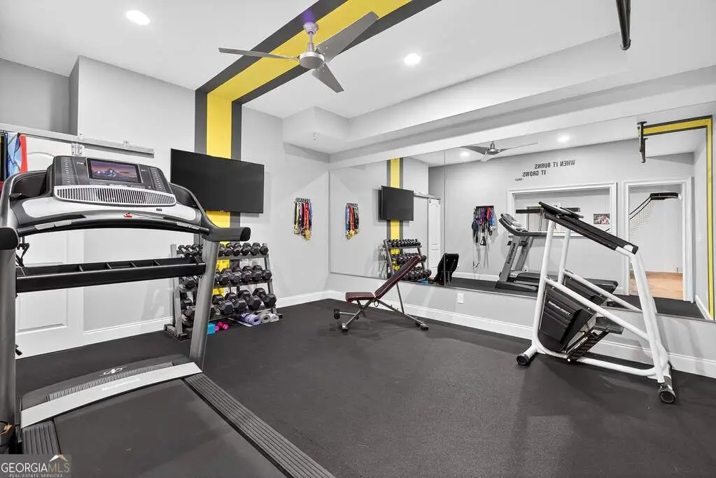 • Home gym with rubber flooring
