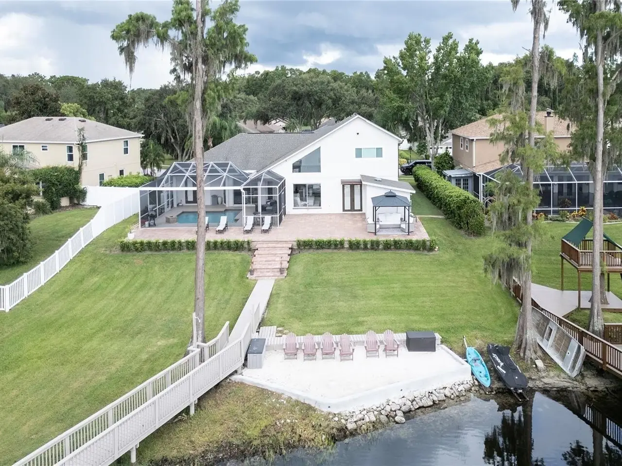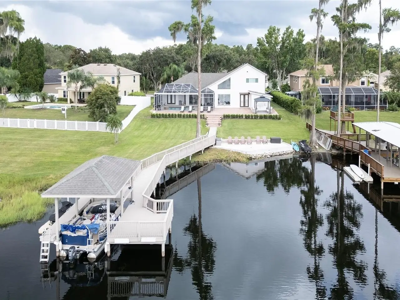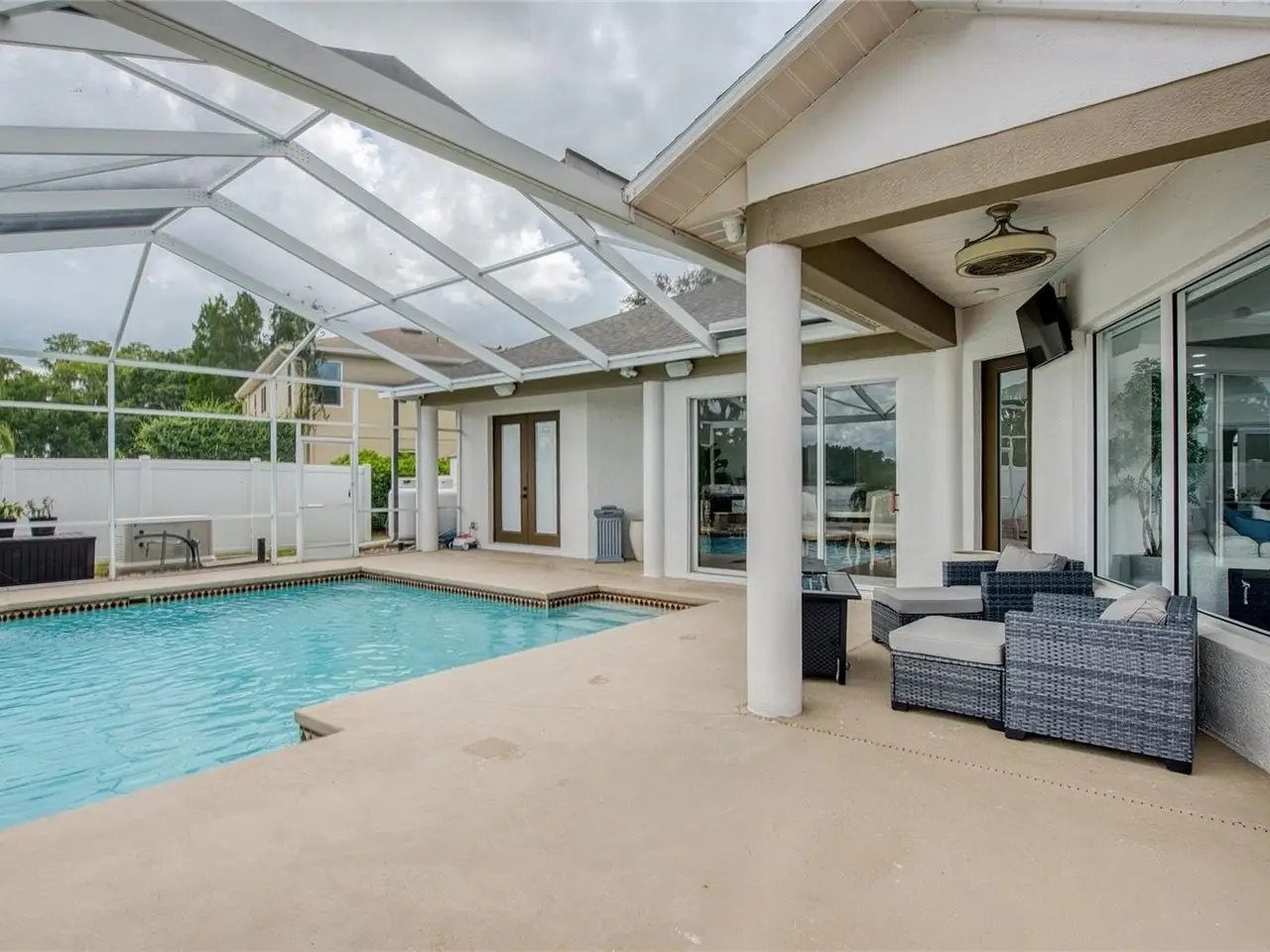 Odessa Lakeside Retreat Featuring Oversized Bedrooms, Modern Kitchen, and Expansive Outdoor Living! Welcome to lakeside living at its finest on the shores of Lake Ann, a pristine 97-acre ski lake in Odessa’s desirable Wyndham Lakes community. This elegant 4-bedroom, 3-bath ranch-style home spans 3,138 sqft. and sits on nearly an acre of property, offering both space and serenity. From boating and wakeboarding to poolside relaxation, this property blends luxury with adventure. Step inside to find vaulted ceilings that enhance the open design and flood the home with natural light. Oversized bedrooms with large closets provide comfort, while expansive picture windows showcase sweeping views of the lake. Thoughtful upgrades throughout the home include updated fixtures, hardwood floors (2023), updated drywall finishes in the main living areas (2023), a central vacuum system, motorized window shades, and even a dedicated movie screen with projector in one of the rooms—perfect for quiet evenings. The kitchen, updated in 2023, shines with stainless steel appliances and modern finishes. Bathrooms were refreshed in 2021, along with new tile, a roof replacement (2021), new gutter and leaf guards (2024), and a re-screened lanai (2021). A Generac generator (2023) and gas tankless water heater (2023) add peace of mind during the Florida storm season. Outside, in the front of the home there is a five car paver driveway (2023) that was permitted and approved by the HOA, and in the backyard the screened lanai and heated pool invite year-round enjoyment. The freshly painted dock extends into Lake Ann, ready for fishing, kayaking, skiing, and sunset cruises. An Astroturf dog run and private sandy beach area add unique touches to the backyard retreat. Located minutes from shopping, dining, The scenic 272-acre Lake Rogers Nature Park, and just 14 miles from Tampa International Airport, this property is the ideal balance of tranquility and convenience. Don’t miss your chance to own this Lake Ann retreat—schedule your private showing today!
