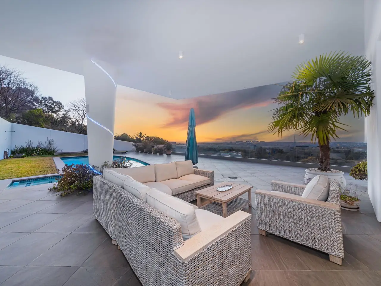For those of you that have been longing for "that special home," we present to you this bespoke residence which we believe is the perfect blend of Clifton-Style living and the Johannesburg buzz, nestled high up on the hills of Houghton Estate. As one enters through the gates of the home, the dramatically long drive does not prepare you for the sensation your mind experiences as the home opens up in front of you to present itself with all of it's design and architectural glory. This residence, boasting 6 bedrooms and 4.5 bathrooms, offers the discerning buyer an opportunity to buy a home that is truly unique in it's offering and design with featured elements of multiple entertainment terraces and truly magnificent 180 degree views over Johannesburg. Open-plan living areas comprise family lounge and dining room serviced by a designer kitchen which has been dubbed by the designer and owner as GÇ£ watermelon and mint. The above opens out seamlessly, through Aliminium glass, cavity stackers onto your top-shelf, covered, entertainment patio with built-in braai and wet bar flowing overlooking your heated swimming pool and garden. Additional features include: - Basement measuring approx 130 sqm - 5 car garage with service pit - Additional parking for approx 10 cars - Separate laundry - Cottage potential for guests or in-laws - Municipal gas - Air-conditioning This home does truly need to be experienced, in person, to understand and appreciate all it offers. Please call today for your private viewing.