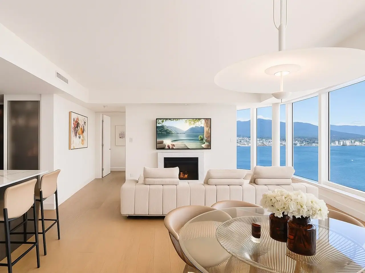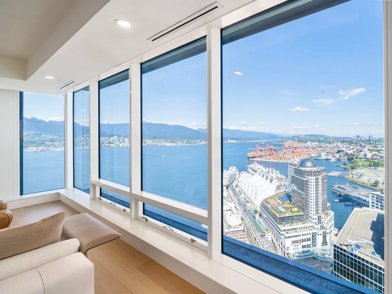 Rarely available, exquisite 02 home in the prestigious Fairmont Pacific Rim. Unobstructed, stunning views of ocean, harbour & northshore mountain from the 5th highest 02 plan. A remarkably expansive, light-filled living room that welcomes the morning sun and flows seamlessly into breathtaking panoramic views. Boasting luxury upgrades in 2020: solid hardwood floor, motorized blinds & blackout shades, marble countertop, the entire laundry room (Miele washer & dryer, countertop, cabinets, sink, faucet), Nest thermostats, all lighting fixtures, water filter, painting; dishwasher & hood fan upgraded in 2024. Boffi Italian kitchen, Miele & Sub-Zero appliances, spa ensuites. Meticulously maintained. Ready to move in. 2 parking.