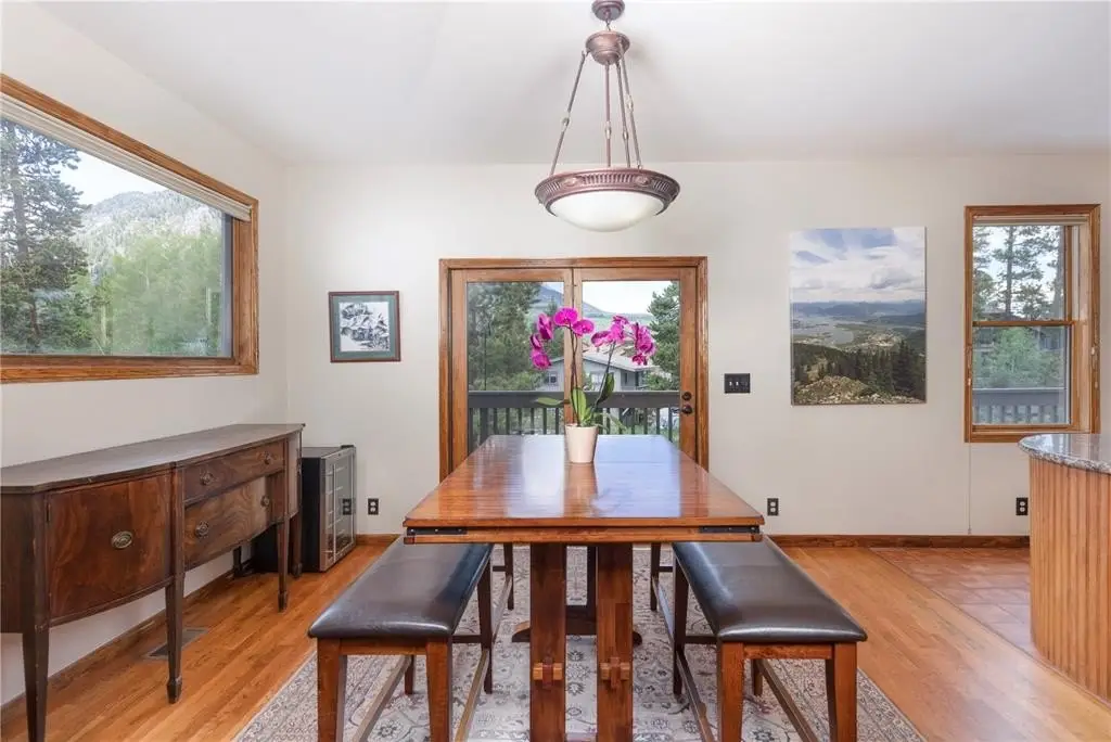 Desirable 4-bedroom single-family residence in Frisco that is just 2 blocks from Main Street at an attractive price. Park your car upon arrival and walk to shopping, Thursday night concerts in the park, restaurants, shops, galleries, the marina, rec path, hiking trails, and the bus stop. A quiet location, where you will feel away from it all yet have the utmost in conveniences. The HOA maintains the yard, so enjoy and relax while taking in the views from the private front deck situated among an aspen grove. Offered in great shape with updated paint, new carpeting, brand new gas stove in great room and more. The 2-car garage and utility at this price point are unmatched when considering the location. Private drive offers plentiful parking. Easy living to enjoy your days in Frisco. Offered furnished for your immediate enjoyment.