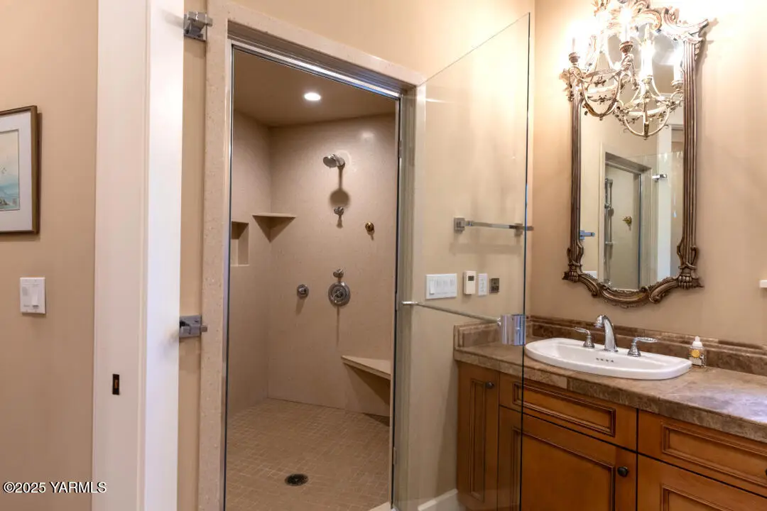 Mediterranean Elegance | Panoramic Views | Year-Round Luxury Perched in one of Yakima's most prestigious neighborhoods, 305 Mountain Shadows is a Mediterranean-inspired retreat that blends timeless design with modern comfort. From the moment you arrive, lush terraced landscaping, a cascading waterfall and stream, and panoramic views of the Cascade Mountains -- including Mount Adams -- create a stunning sense of arrival. One of the home's crown jewels is the year-round indoor pool and spa, set in a private pool room with a private gym and folding glass doors that open to an expansive terrace. Relax to the sound of the waterfall and soak in breathtaking views, or gather around the outdoor fireplace and gas grill for unforgettable evenings under the stars. Step inside the foyer, and be greeted by soaring tongue-and-groove wood ceilings, rich tile floors, and abundant natural light define the elegant interior. The chef's kitchen features a Viking range, Sub-Zero refrigerator, custom cabinetry, and a large island, flowing into a warm family room with built-ins and an adjacent dining area -- ideal for entertaining. The living room offers a tiled gas fireplace and opens to a full-length patio, merging indoor and outdoor living. The luxury primary suite is a true retreat -- offering a serene, spa-like experience with a double-headed steam shower, beautiful tile finishes, and a spacious walk-in closet. A second en-suite bedroom ensures comfort for guests, while the home office with hardwood floors and built-in cabinets creates an ideal workspace. A third bedroom (and 4th bath) adds flexibility -- perfect for a second office or guest room. For added comfort and confidence, the home features a recently upgraded HVAC system ensuring year-round comfort and efficiency. Just minutes from wineries, golf, and recreation, this exceptional property is a sanctuary of refined architecture, resort-style amenities, and natural beauty in the heart of Central Washington.