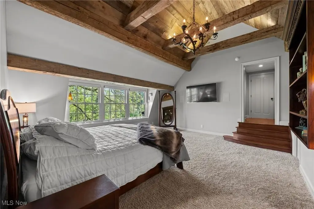 A magical home and property, this exquisite English Tudor manor circa 1917 is sited on 24+ breathtaking acres with Chagrin River frontage in the heart of the Chagrin Valley! The present owner has renovated this home to perfection while maintaining the homes original charm and character! A circular driveway and professional landscaping accentuate the handsome tudor facade and the gorgeous walkway that leads to the front door. As one enters through the front door, you will immediately notice the incredible architectural charm coupled with the modern amenities that make this home a staple of luxury living! At the heart of the home is the spectacular kitchen which features custom cabinetry, high end professional appliances, granite countertops, and two islands! This one of a kind kitchen opens into the grand dining area, incredible vaulted great room, and the charming screened porch. The great room is extraordinary featuring a beamed vaulted ceiling and magnificent fireplace. Off the main entrance foyer is the private library, a fabulous scullery(second kitchen), glass walled atrium, and the incredible billiard room. Also on the first floor is the 5th bedroom(guest suite) with private bathroom. The second and third floor offer 4 incredible bedroom suites including the most luxurious owners suite. There is an incredible bedroom(dramatic vaulted beamed ceiling and fireplace,) gorgeous bathroom, and two custom walk-in closets. A finished lower level has a mudroom, exercise room, and more! The setting and grounds are truly breathtaking with Chagrin River frontage, valley views, and a sweeping rolling lawn. You can entertain on the expansive stone terrace, relax in the hot tub, or entertain in the incredible outbuilding! This multi functional building has a fabulous game room/pub room as well as a functioning barn area. Car enthusiasts, hobbyists, or even horseback riders will love this one of a kind space! A truly one of kind jewel in the heart of the Chagrin Valley!