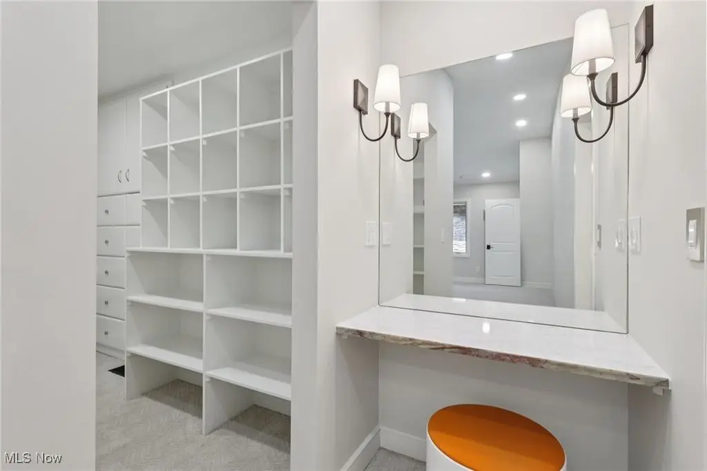 Spa-inspired bath with dual vanities