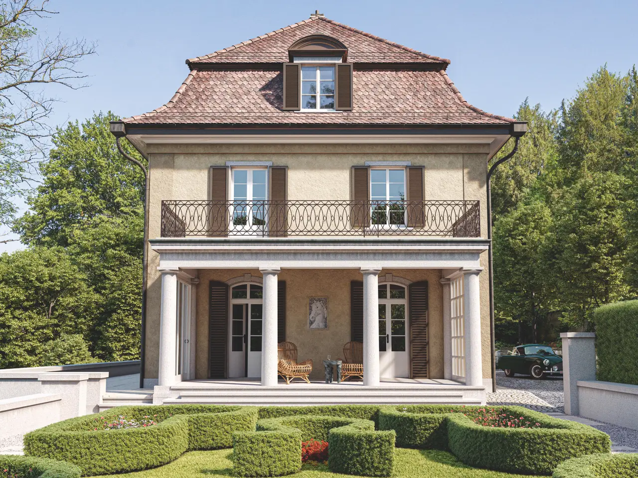On the sunny slope of the Zurichberg, you can live away from the hustle and bustle of the valley and enjoy the spectacular view across the lake to the Alps. At the same time, you can quickly immerse yourself in city life at any time. The director of a textile machine factory had the villa built in 1926 in the neo-baroque style. The »Domaine Cavalier« has a striking mansard hipped roof, a neat, well-proportioned façade and a projecting base with various outdoor terraces. Despite all the decoration, the relatively functional architecture also reveals the influence of Bauhaus modernism. An approved refurbishment plan is already in place, meaning that it will be possible to move into a lavishly and sensitively renovated residence within a year. At the end of a summer's day, you can relax on the terrace with a glass of champagne. The villa »Domaine Cavalier« is a unique place to live and work in the best part of the city on the Limmat. We would be very pleased to show you this property in person. If you have any further questions or would like to arrange a viewing appointment, please do not hesitate to contact us.