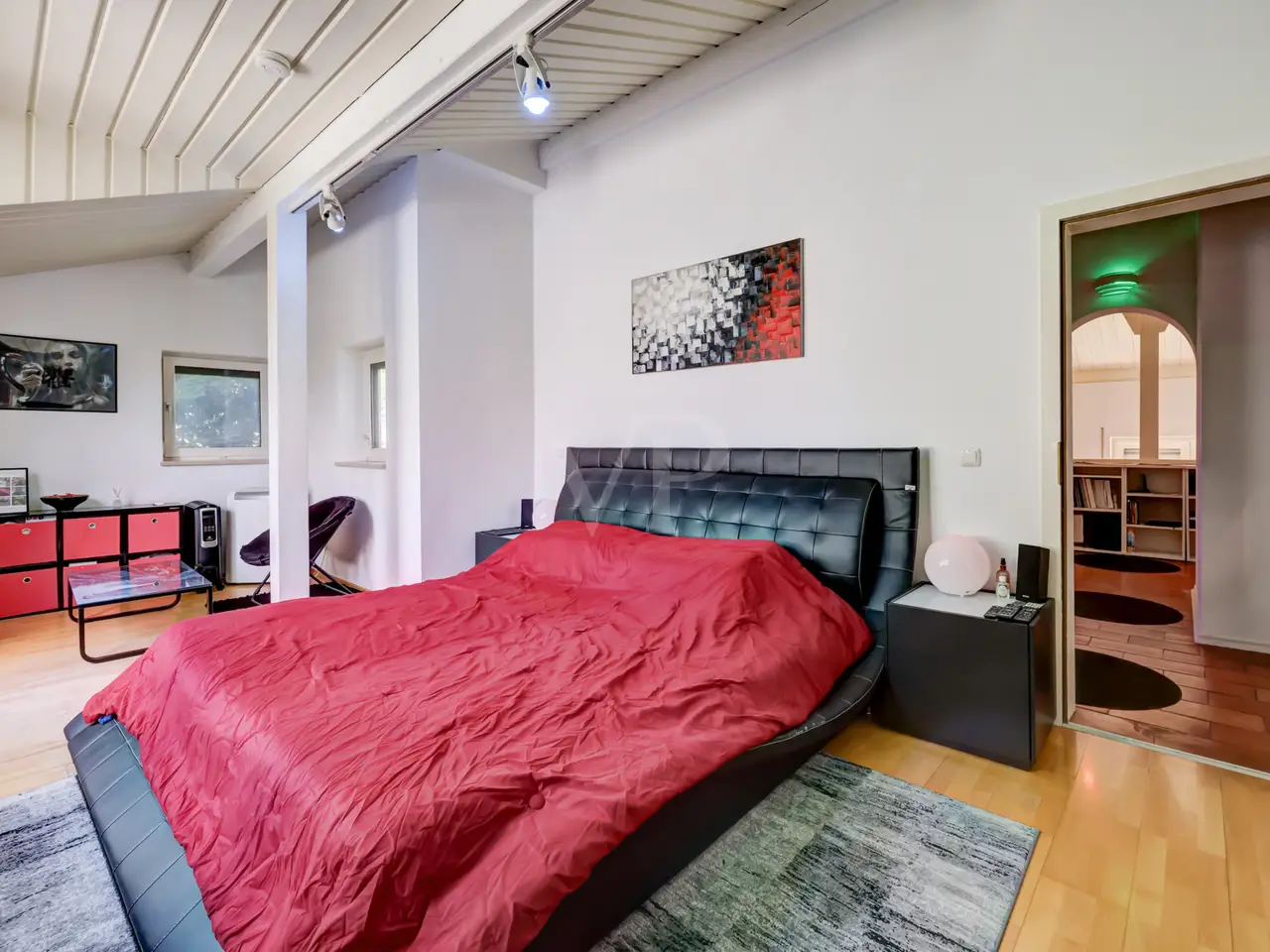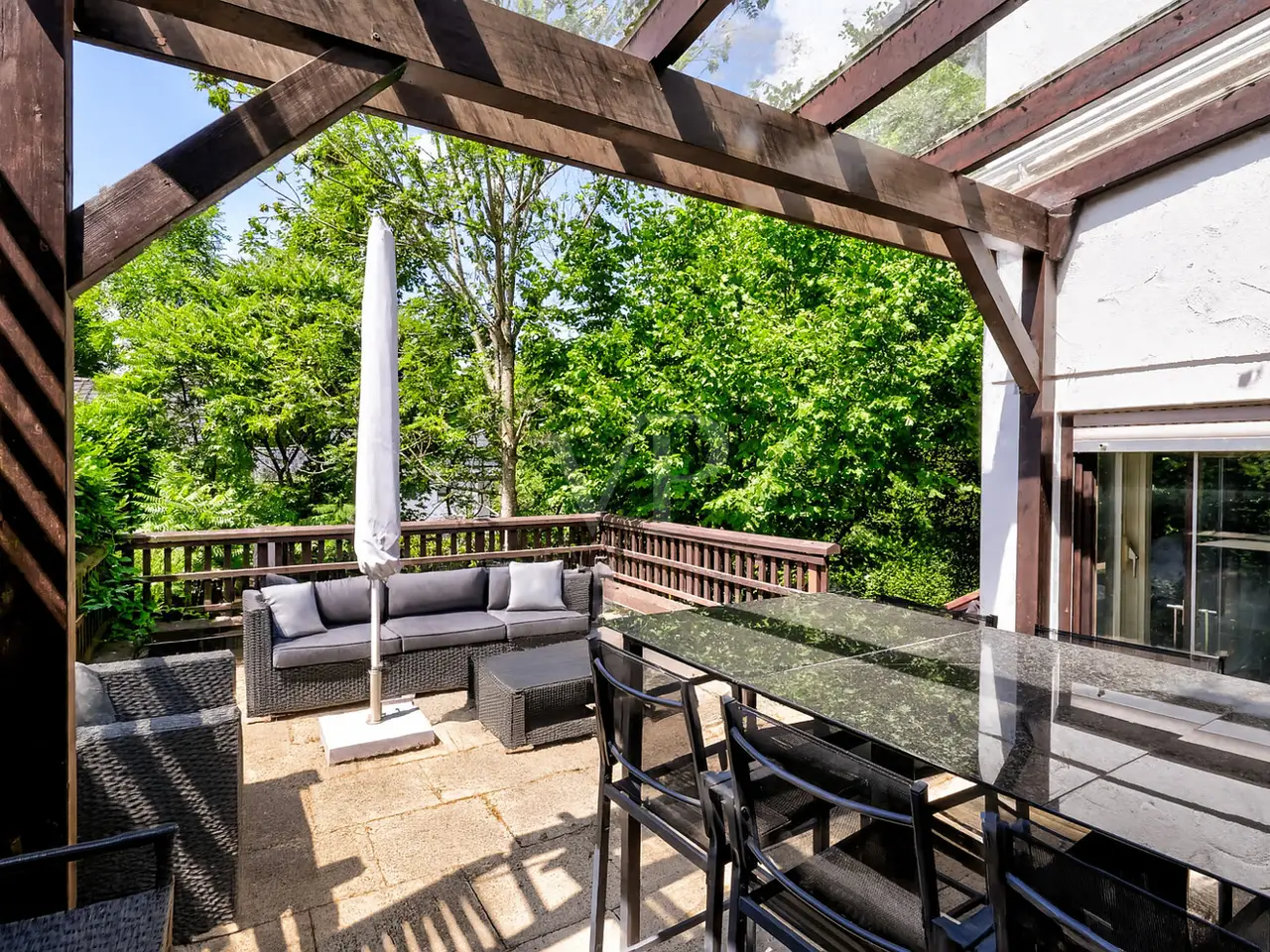 Exclusive oasis of calm with wellness area, split-level architecture and impressive sense of space In an absolutely quiet, barely visible location at the end of a private residential street, a special kind of residential gem awaits you: this extraordinary property combines spaciousness, privacy and stylish living at the highest level - ideal for people with high standards of comfort, space and retreat. On a total living area of approx. 250 m² - of which around 201 m² is pure living space (excluding swimming pool and terrace areas) - an overall architectural concept opens up that impresses with open levels, light-flooded rooms and a charming split-level design. Generosity, style and functionality come together here. The spacious living area with impressive corner fireplace invites you to spend relaxing evenings and impresses with its unique sense of space. With its floor-to-ceiling windows and direct access to the partially covered terraces and an idyllic loggia, the adjoining dining room offers a harmonious interplay of indoor and outdoor areas - ideal for sociable evenings and relaxing hours in the countryside. The private wellness area in the basement is a real highlight: the swimming pool (2.5 × 10 m), which is currently closed but can easily be reactivated, and an in-house sauna offer a luxurious spa feeling within your own four walls - all year round and completely undisturbed. The three bedrooms, one of which has a walk-in closet, offer plenty of retreats for the whole family. The space is complemented by a modern guest WC, an additional guest shower room and high-quality real wood parquet flooring on the upper floor, which creates a warm, homely atmosphere. The garden level has a separate living area with its own terrace, which is ideal for use as a granny apartment, office, studio or guest apartment. Three spacious cellar rooms offer additional storage space and room for hobbies or a workshop. Several parking spaces are available outside, and an alarm system provides an additional sense of security. Thanks to the cozy underfloor heating under elegant terracotta floors, the generous room layout and the wide range of possible uses, this property is perfect for families or couples who want to combine stylish living with wellness and retreat quality. Note on use: The property is currently rented out for €3,000 basic rent. If you wish to use the property yourself, you can do so subject to the statutory notice period of 6 months. The relationship with the current tenant is very good - a short-term viewing by arrangement is possible without any problems.